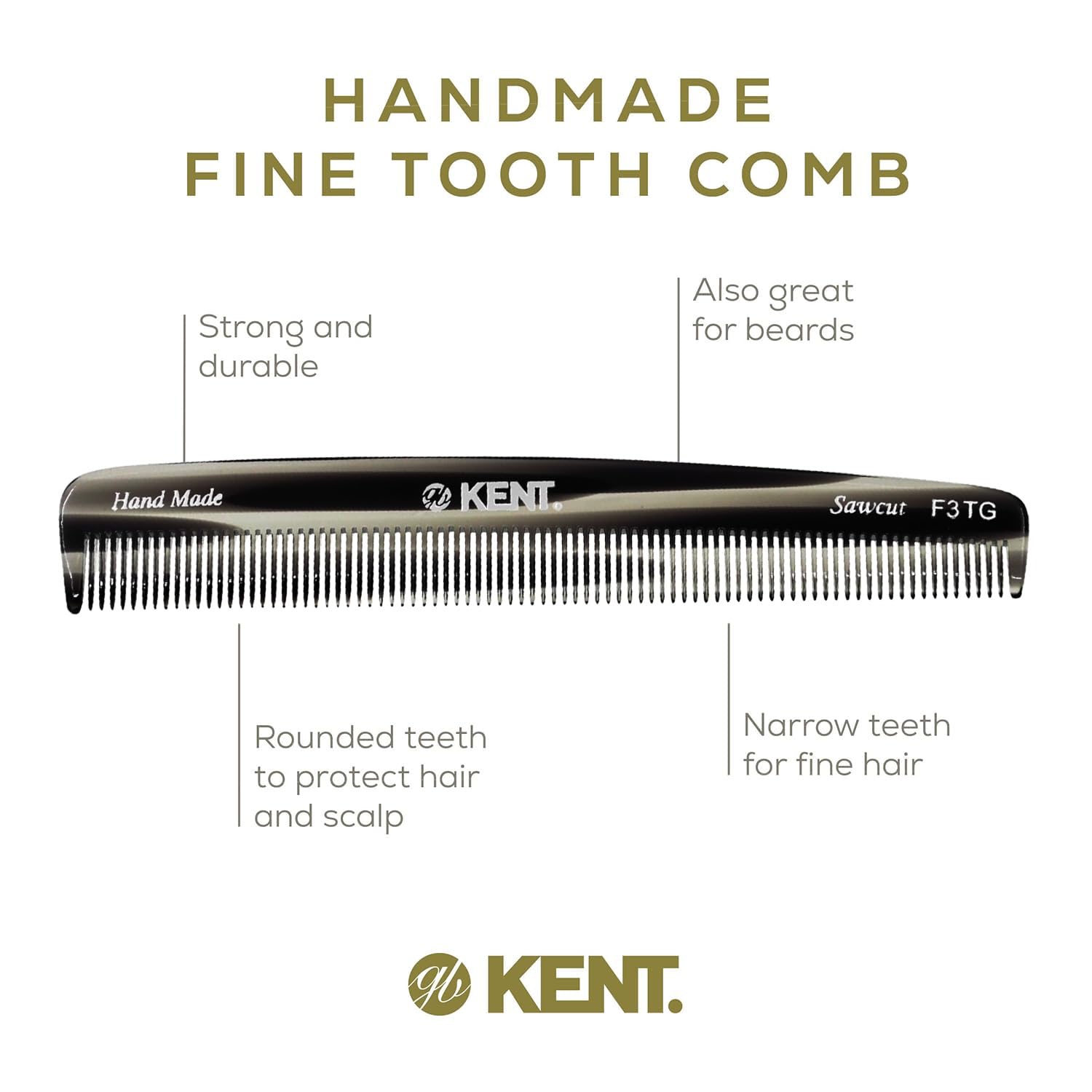 Kent F3T Black Graphite Fine Tooth Comb - Hair Parting and Straightening Comb for Men's & Women's Dandruff Remover, Saw Cut and Hand Polished Made in England