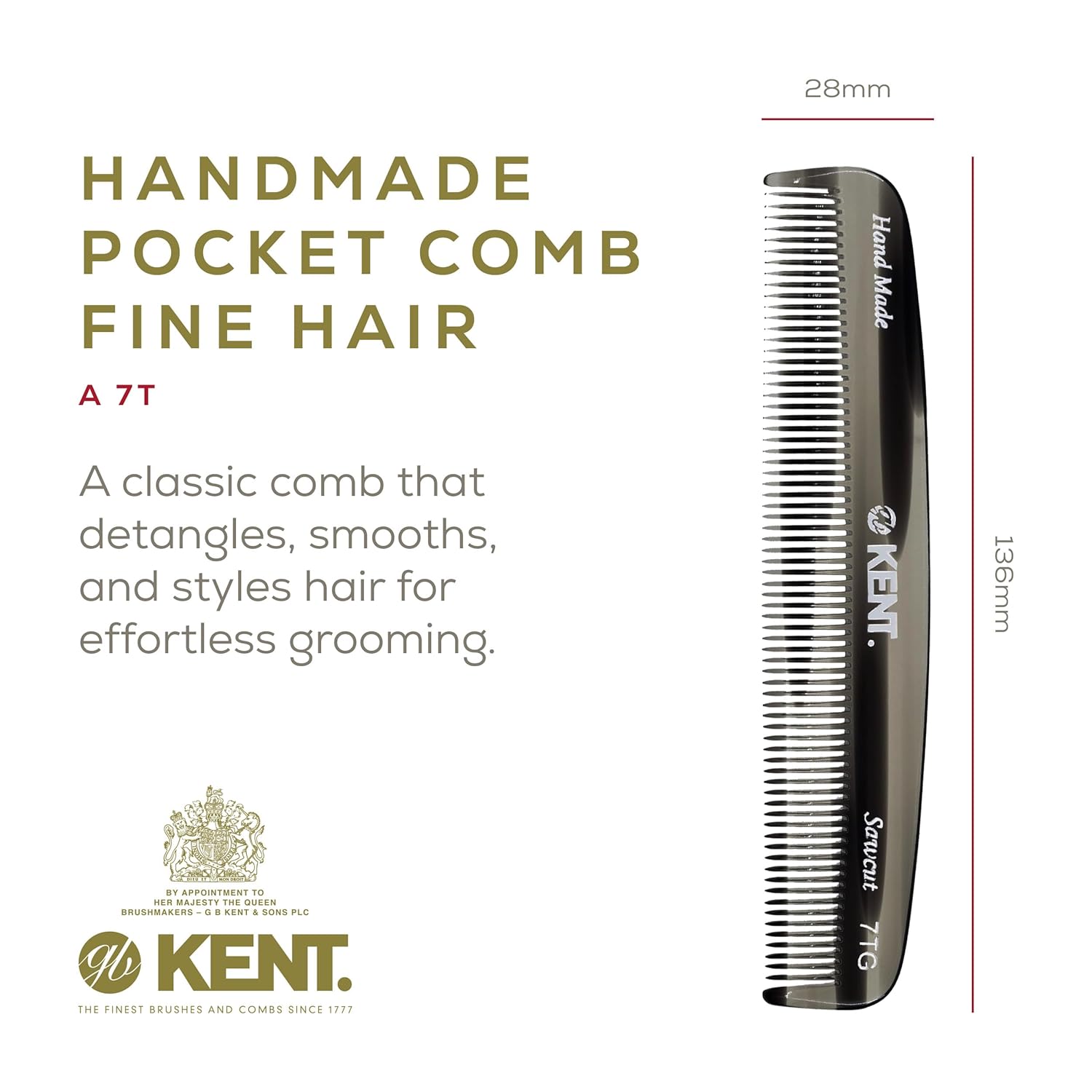 Kent 7T Black Graphite All Fine Tooth Pocket Comb for Men - Handmade Hair Comb for Men for Everyday Grooming and Styling - Travel Comb for Hair Care, Mustache and Beard Care, Saw Cut and Hand Polished