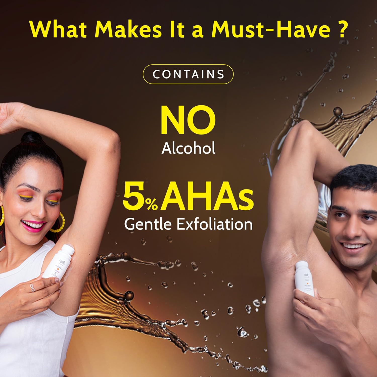 UnderArm Roll-On with 5% AHA|Lactic & Mandelic Acid|Prevents Odour, Brightens Skin & Exfoliates Underarm|For Sensitive Skin |Woody Musk Fragrance |Alcohol & Aluminium Free | 1.35 fl oz