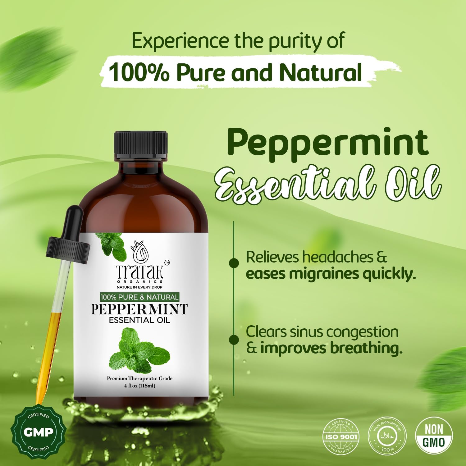 - PACKAGE INCLUDES: Pack of 1 Tratak Peppermint Piperita Essential Oil with dropper, Net Weight: 4 Fl Oz