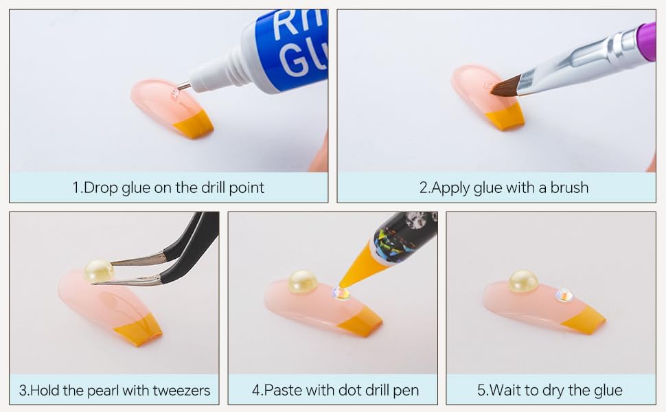 - Useful tools - These pearls and rhinestones have a flat back, which is excellent for easy placement.and you can pick up any large or small pearls and rhinestones with the crayons we bring along. And use the brush to smooth out the Gel , these tools will work very well.