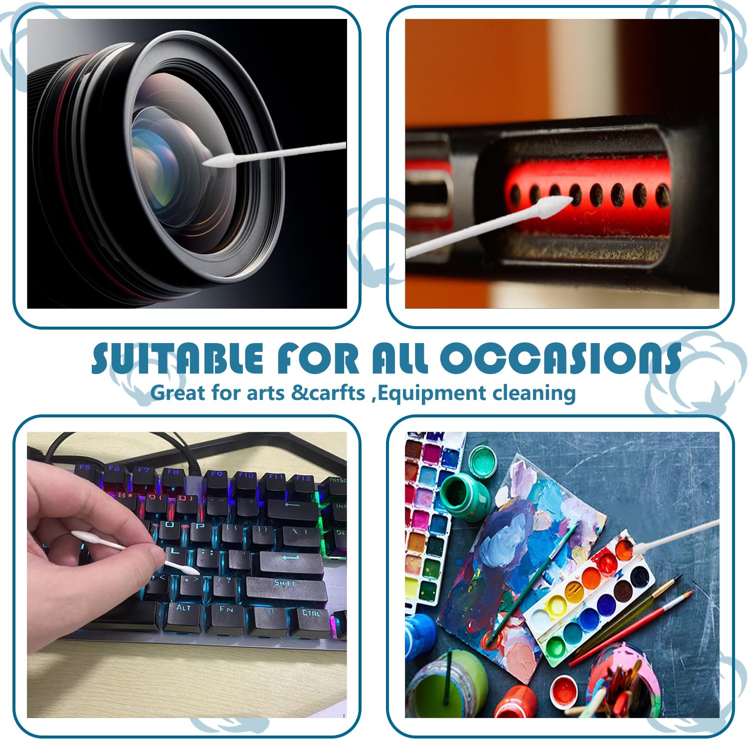 - 3 inch double-pointed makeup swabs.