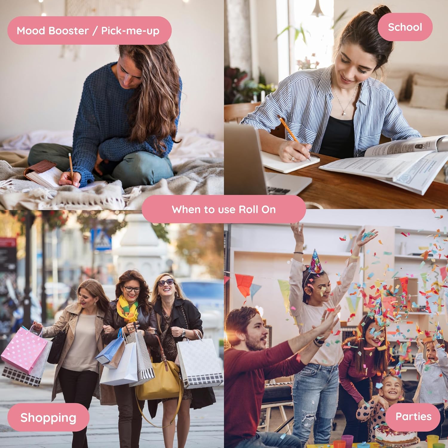 - ON-THE-GO CONVENIENCE - Our roll-ons are thoughtfully crafted with a travel-friendly size, making them perfect companions for your daily adventures. Slip one into your bag or pocket and effortlessly elevate your mood anytime, anywhere. The sleek and compact design ensures mess-free application, while the rollerball glides smoothly over your skin, delivering the perfect amount of scent with each stroke.