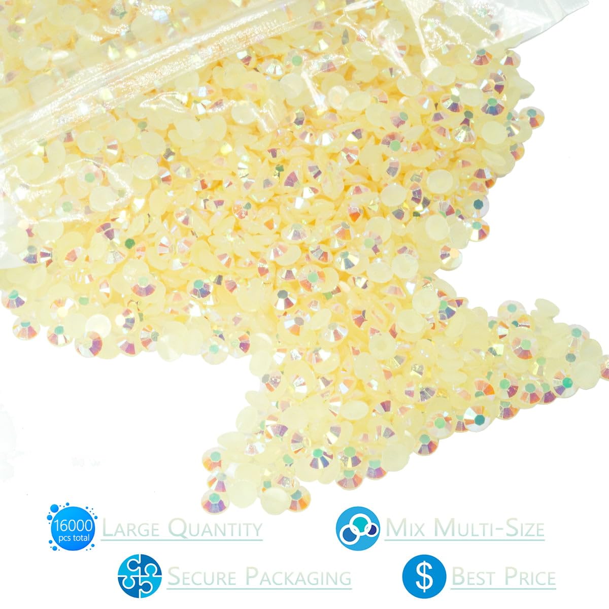16000PCS Light Champagne AB Resin Rhinestones for Crafting 3mm 4mm 5mm Flatback Jelly Stones Bulk SS10 SS16 SS20 Non-Hotfix Diamonds Gems Charms for Nails Face Eyes Makeup Tumblers Bottles DIY Crafts
