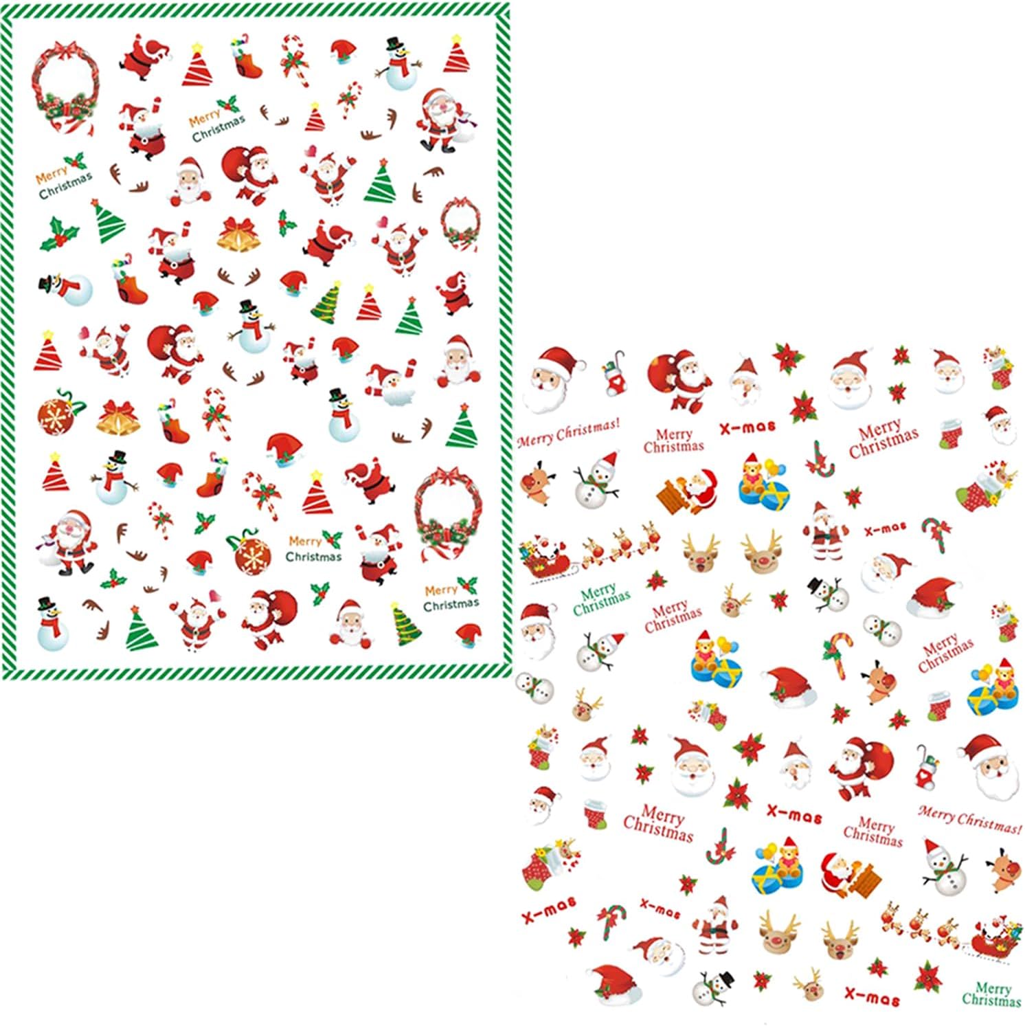 HNUIX Nail Stickers - 3D Christmas, Self Adhesive Nail Decals, Multi Colour Pattern, 10 Sheets, for Nail Art