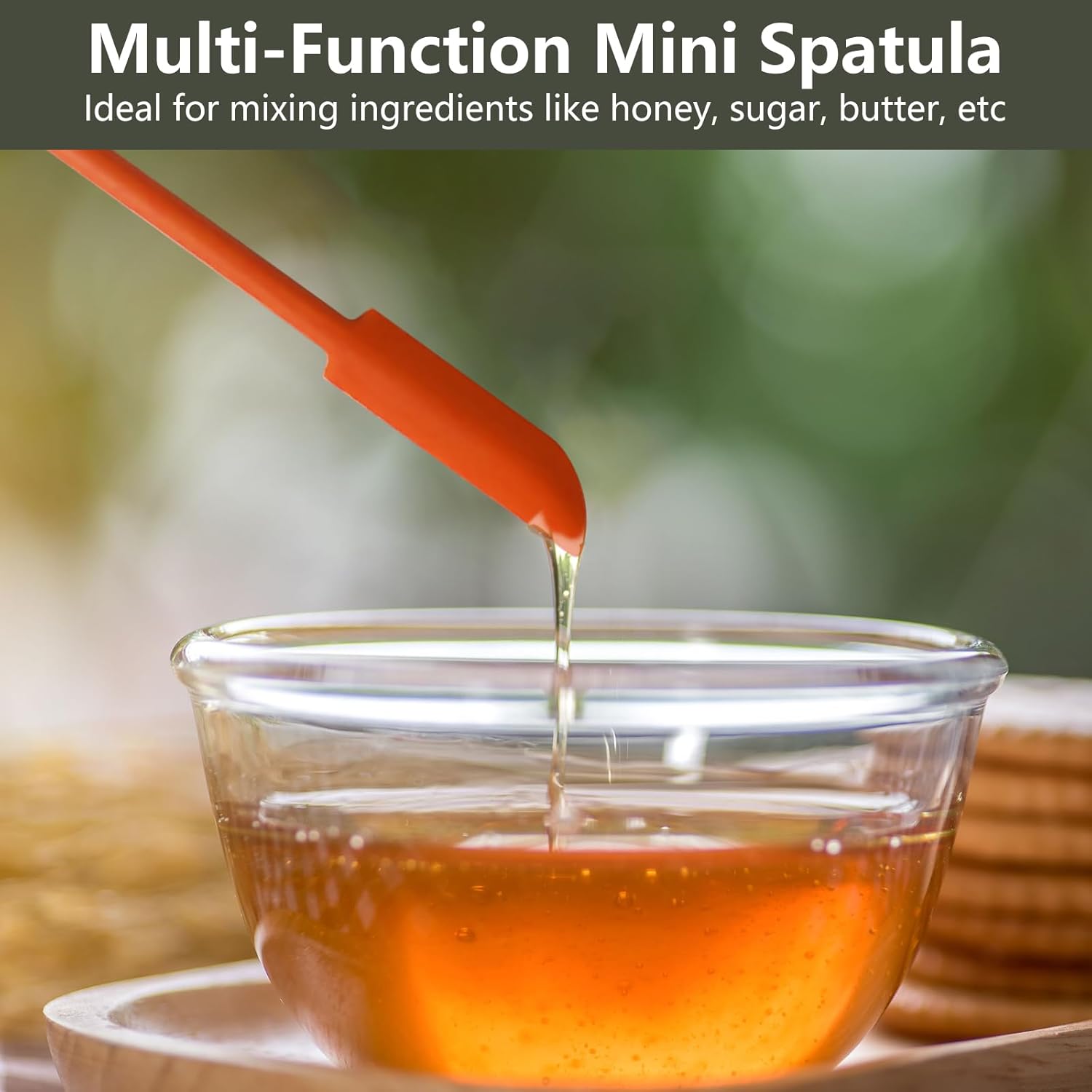 - β Don't Let a Single Drop Go to Waste-Mini silicone spatulas are ideal for accessing hard-to-reach areas due to their long bodies and narrow heads, as well as their range of sizes and lengths. This makes them perfect for reaching into jars and other containers with small openings.