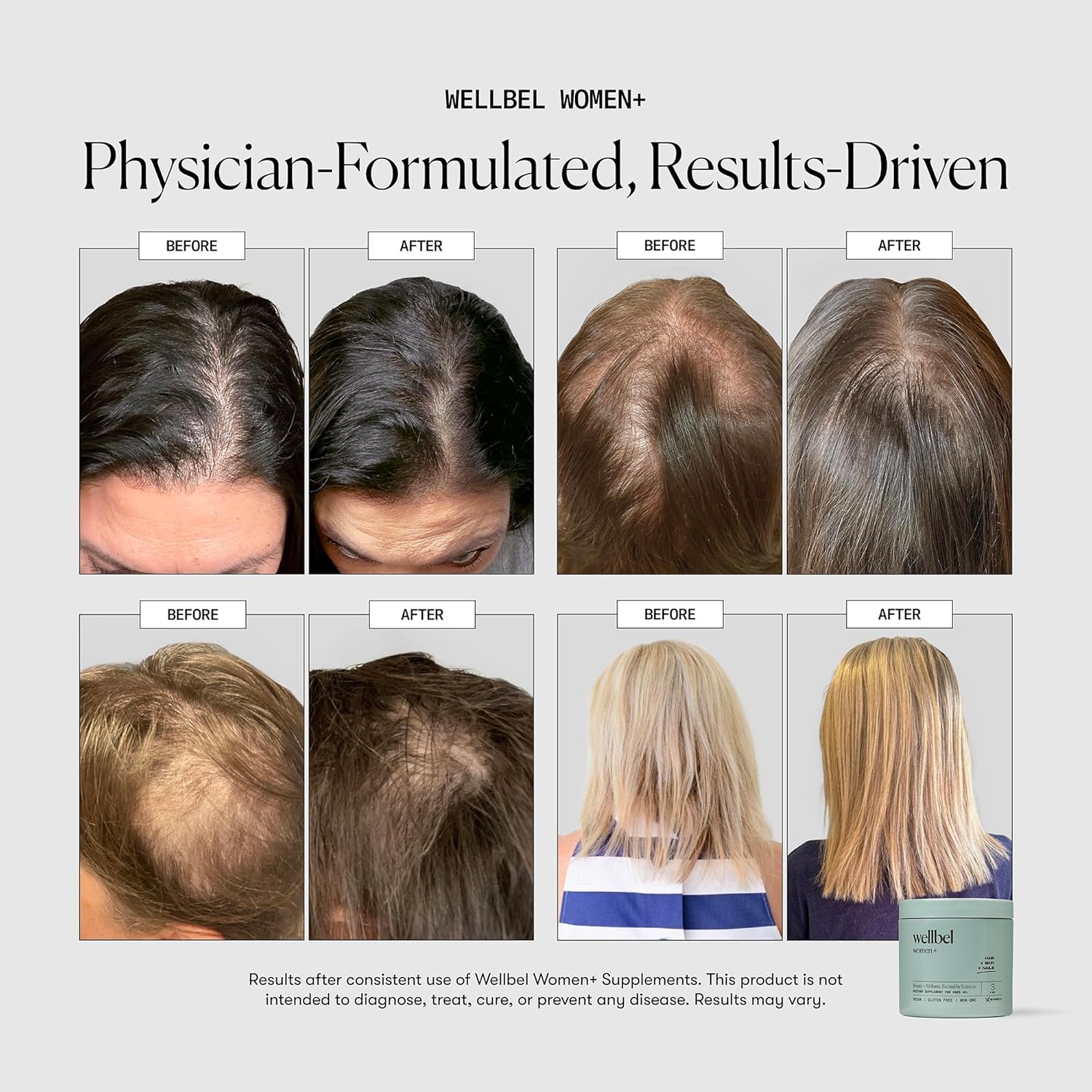 - PHYSICIAN FORMULATED FOR AGES 45+: Women+ supports hormonal balance and increases collagen, elastin, and keratin production to nourish thinning hair and promote healthy hair growth leading up to and beyond menopause.