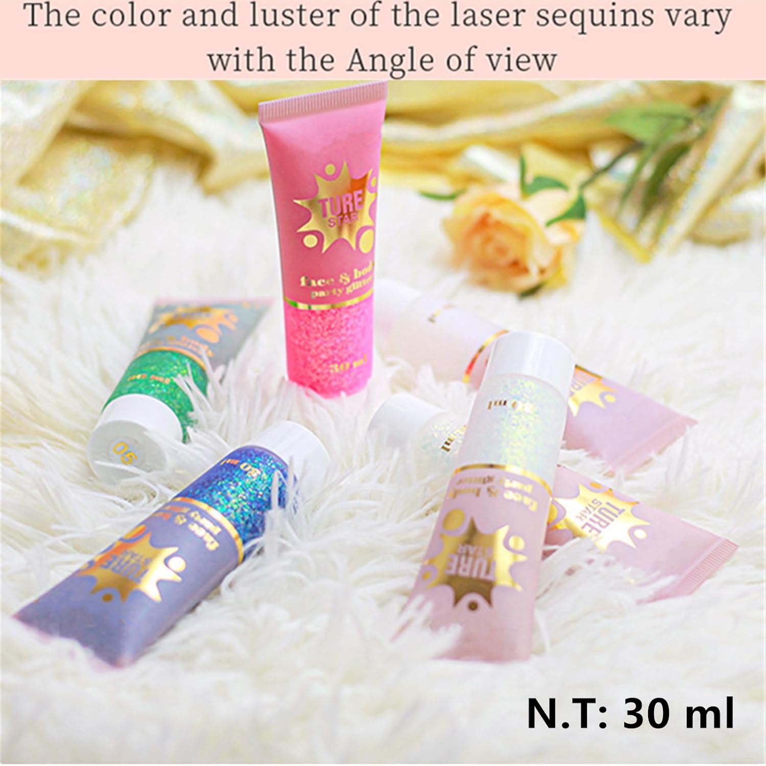 - 【Self-Adhesive Body Glitter】It is a glitter gel that is self-adhesive, so you don't need to use glue when using it,directly apply to anywhere you want.The flatter you lay it to skin the longer it holds.It takes a second to dry.After dried and it is set,it keeps shiny in the sun and will not drop at all.