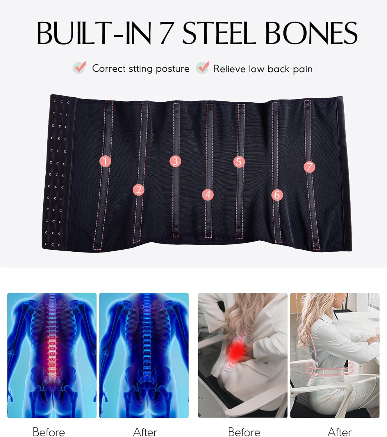 - STRONG SUPPORT LOW BACK SHAPEWEAR: The shapewear for women tummy control equips with 7 spiral steel bones fitted to curve naturally, encouraging an upright posture all time without rolling up and down, no matter you're doing housework, working, or exercising. Back fat shapewear provides all-around support and pressure to the waist area, control the flabby back, evenly distribute pressure along the back to relief back pain and improve hunchback, so as to achieve a more elegant appearance.