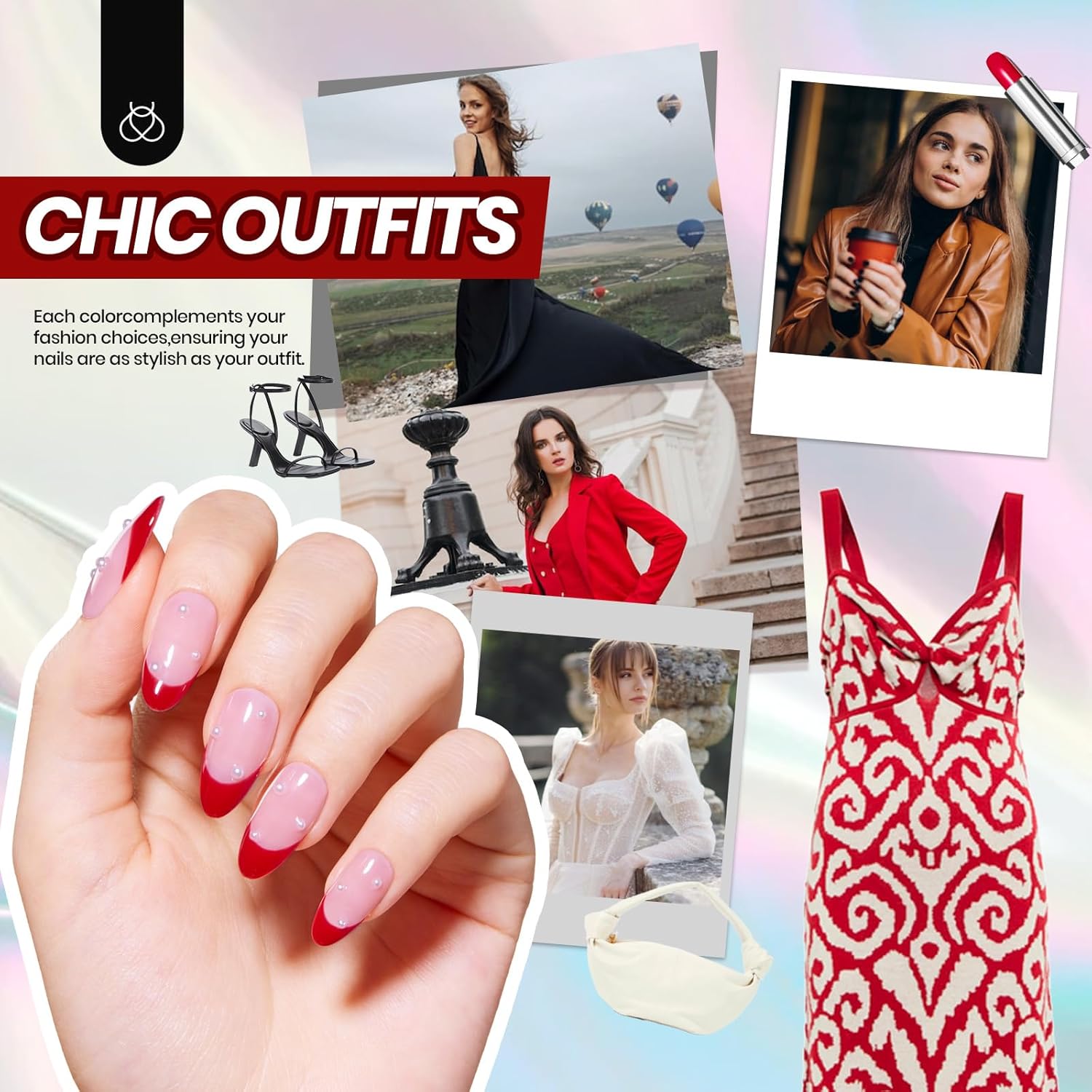 • 【Easy to Use】Quick manicure, this valentines gel nail kit contains 2*french stickers and 2*nail gems, which can quickly create beautiful nails. At the same time, it is also easy to remove nail polish, just put a little acetone on the foil cotton pad and wrap your nails/fingers. Wait for a few minutes, the gel nail polish will fall off immediately. It is best to use our Cuticle pusher to remove it (the kit does not include acetone, you need to buy it yourself)