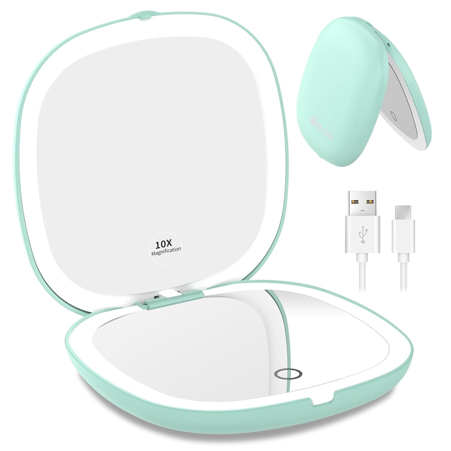 WOBSION Rechargeable Lighted Travel Makeup Mirror,1x/10x Compact Magnifying Mirror with Lights,Portable for Bag,4inch,Gift,Cyan