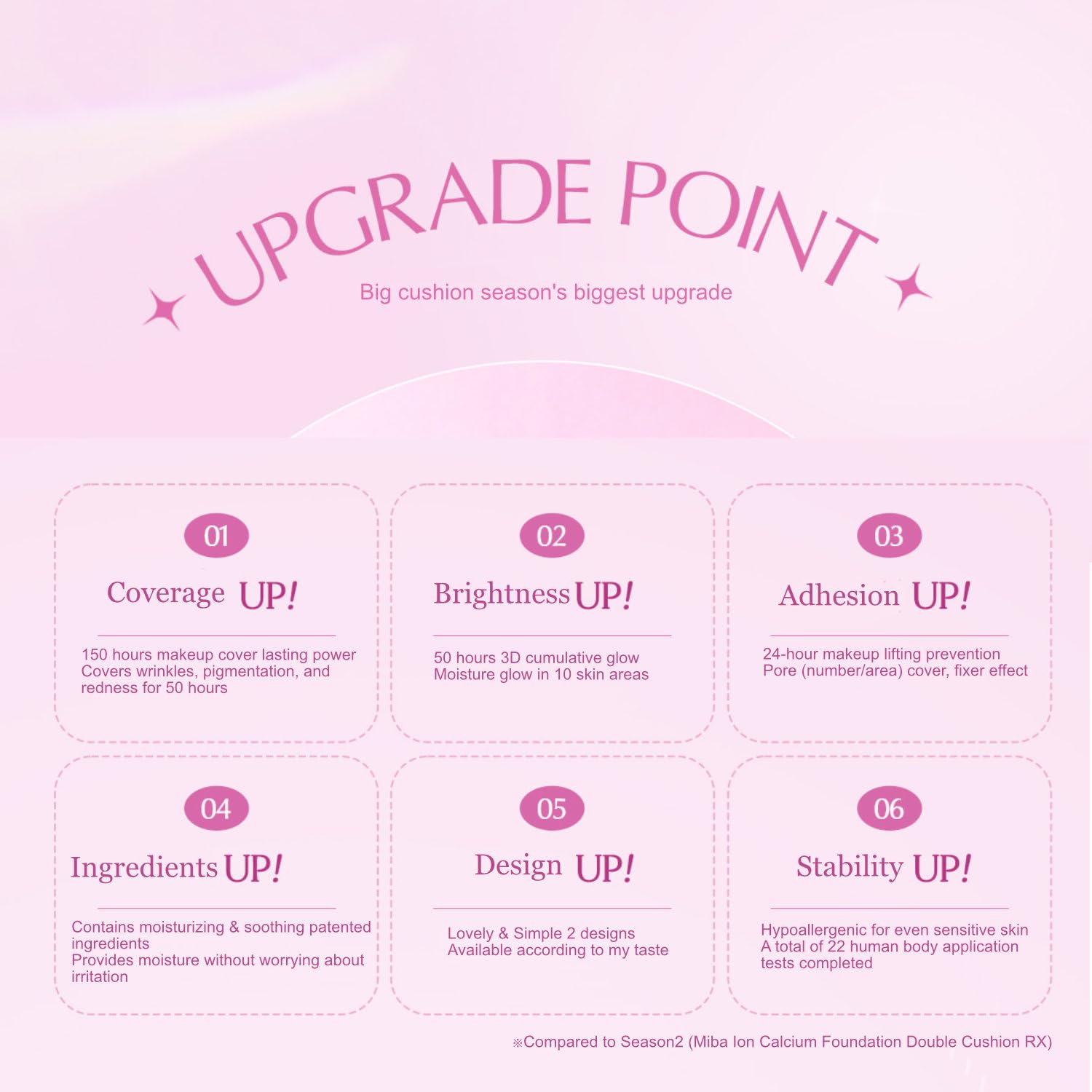 MIBA Ion Calcium Foundation Double Cushion Glow 25 g / 0.88 oz Big Cushion SEASON 3. Long Lasting Cover Effect. Moisture glow. Skin tightening relief. Smooth adhesion. (#23 Rosy Beige Refill)