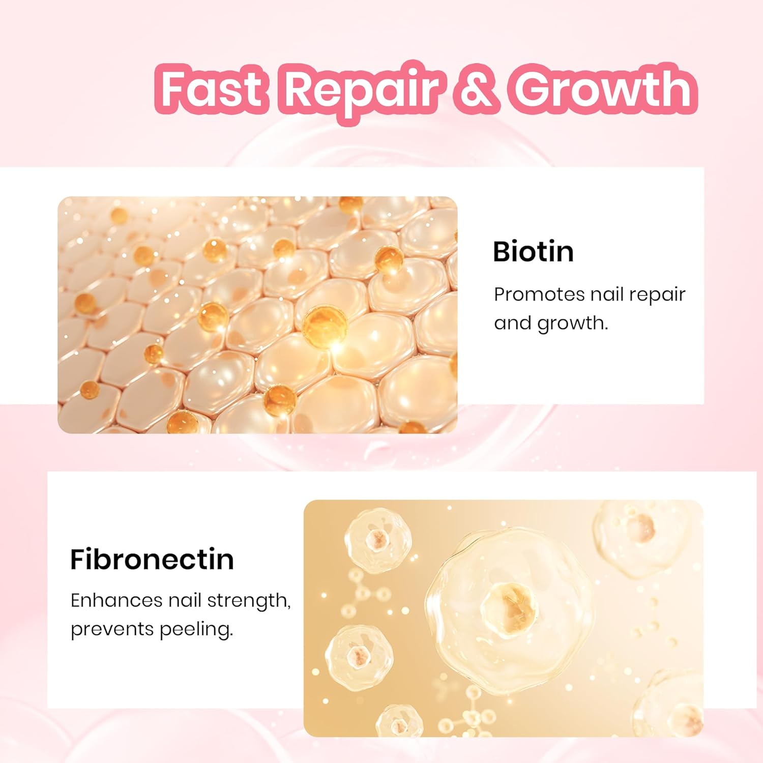 - Safe and Friendly Substances: Enriched with Vitamin B7 and natural plant extracts, this nail strengthener enhances circulation to the nail bed, stimulates new growth, and strengthens soft nails, promoting faster recovery and resilience