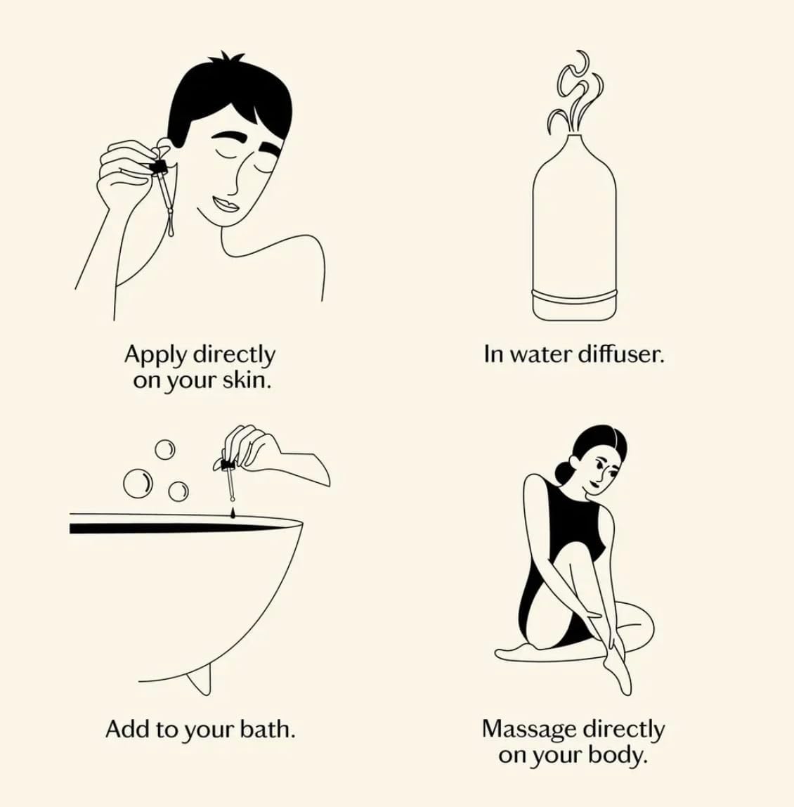 - Skin-Safe & Diffuser-Compatible. Easy to use. Apply directly to pulse points, temples to scent yourself naturally or use a diffuser. Ideal for evening rituals, baths, or winding down, or added to your nighttime skincare ritual for a moment of calm.