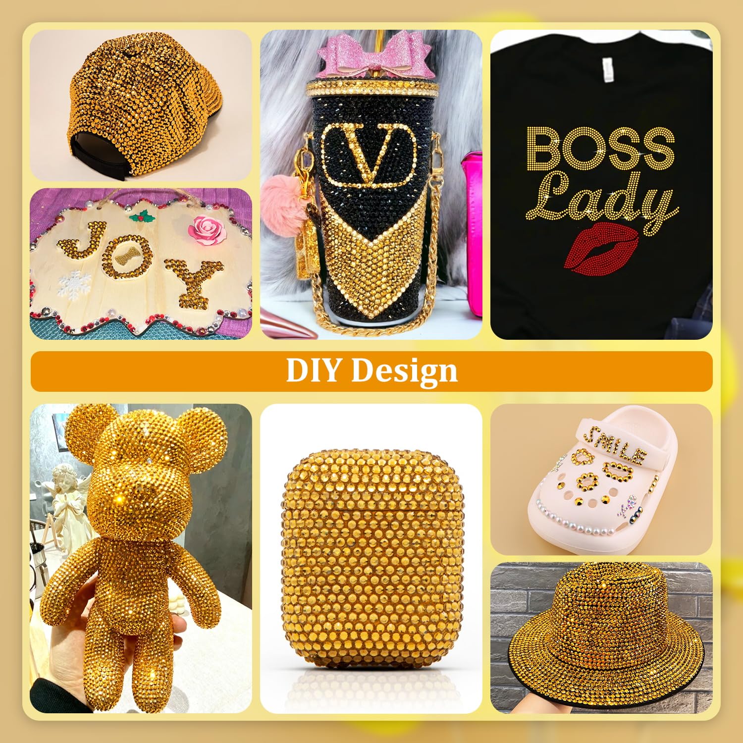Resin Rhinestones for Crafting, 1 Box Copper Gold Multi Sizes Flatback Bedazzling Crystals for Crafts Nail Art Decoration, Non Hotfix Gems Charms for Tumbler Shoes Clothing Fabric Face Makeup