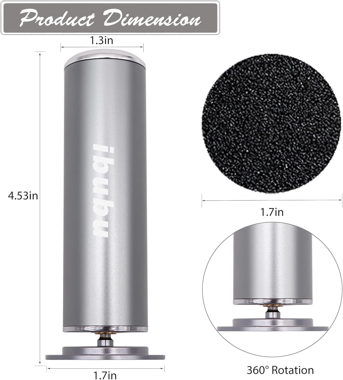 - 【360 Degree Rotating】Adopt powerful motor,360 degree rotating to remove foot heel cracked, dry, dead skin, not for thick calluses.(Before use, soak your feet in warm water for half an hour to soften dead skin) premium aluminum body is good for efficient heat dissipation, comfortable holding feeling ,and low vibration