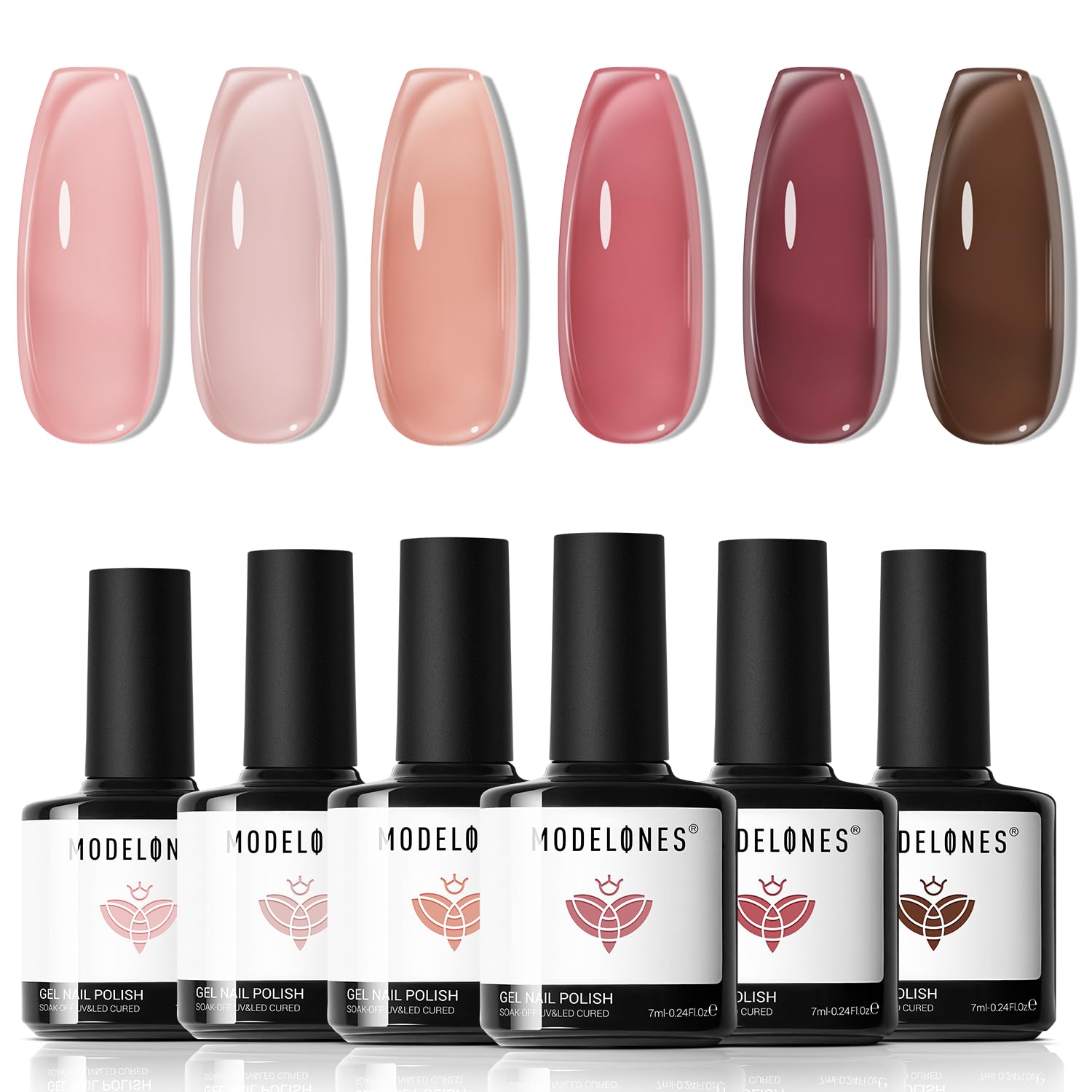 Modelones Gel Nail Polish Set 6 Colors Nude Red Pink Brown Transparent Gel Polish Kit Neutral Clear Crystal Translucent Manicure Sheer Nails Art Trend Home DIY Manicure Gift For Women Girl