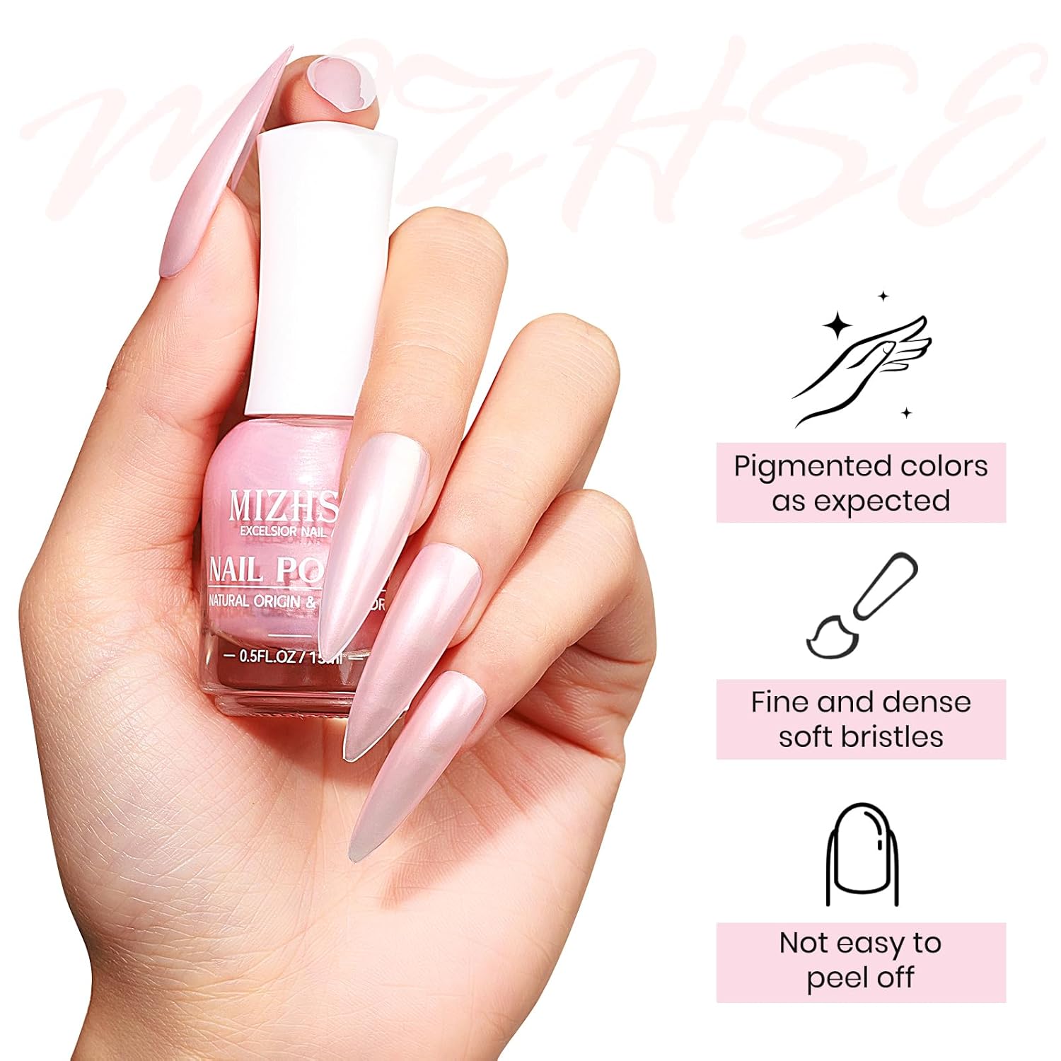 MIZHSE Nail Polish: 15Ml Mermaid Pearl Nail Polish Pink Aurora Effect Nail Polish, Fingernail and Toenail Polish Glossy Long Lasting Nail Polish Trendy DIY at Home Nail Gift Spree
