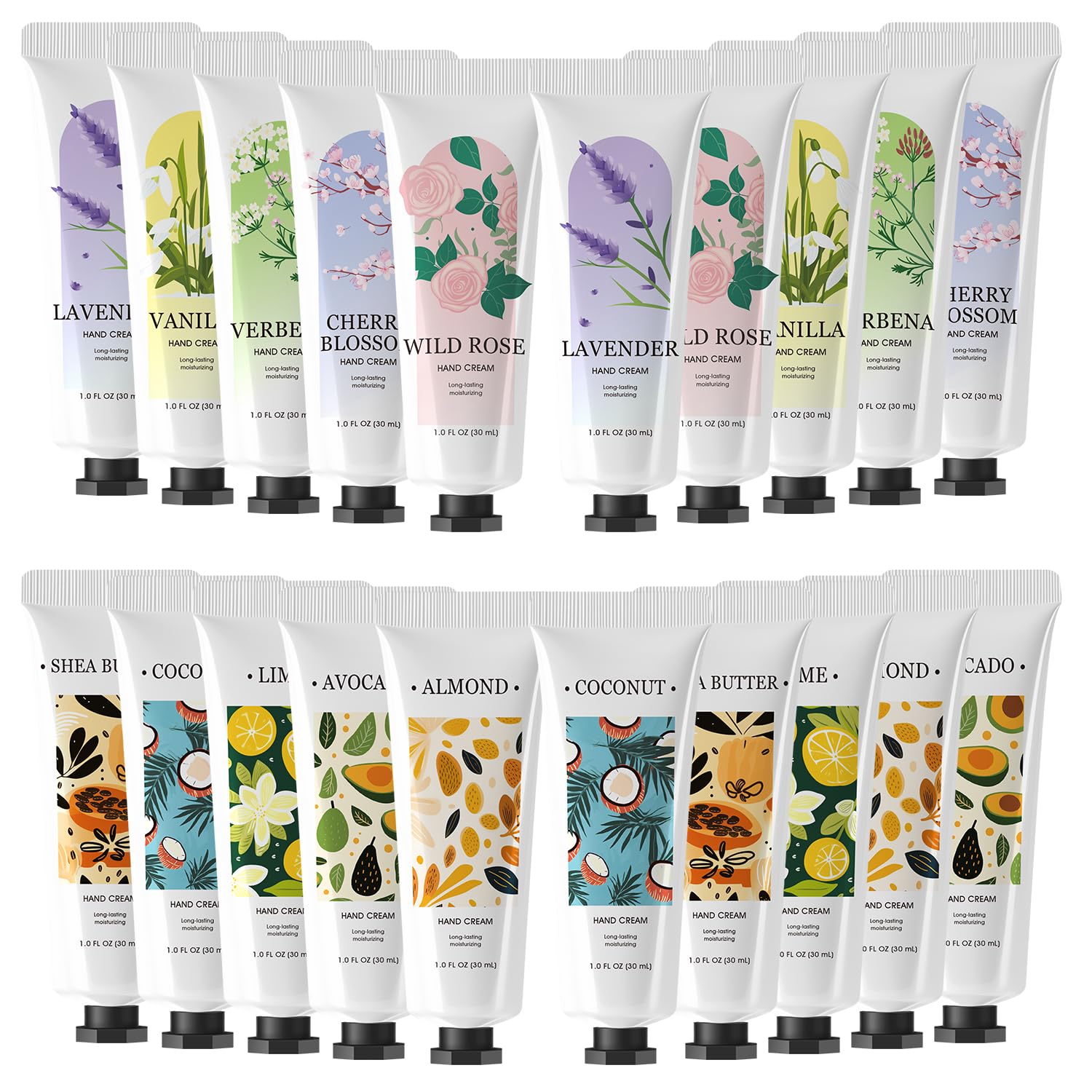 - 20 Pack and 10 Natural Scents for Every Mood β This hand cream set includes 10 delightful scents: lavender, vanilla, verbena, cherry blossom, wild rose, shea butter, coconut, lime, avocado, and almond. Each scent is naturally refreshing, making this hand lotion gift set both versatile and enjoyable for daily use. Perfect for anyone who loves a variety of mini hand lotion options.
