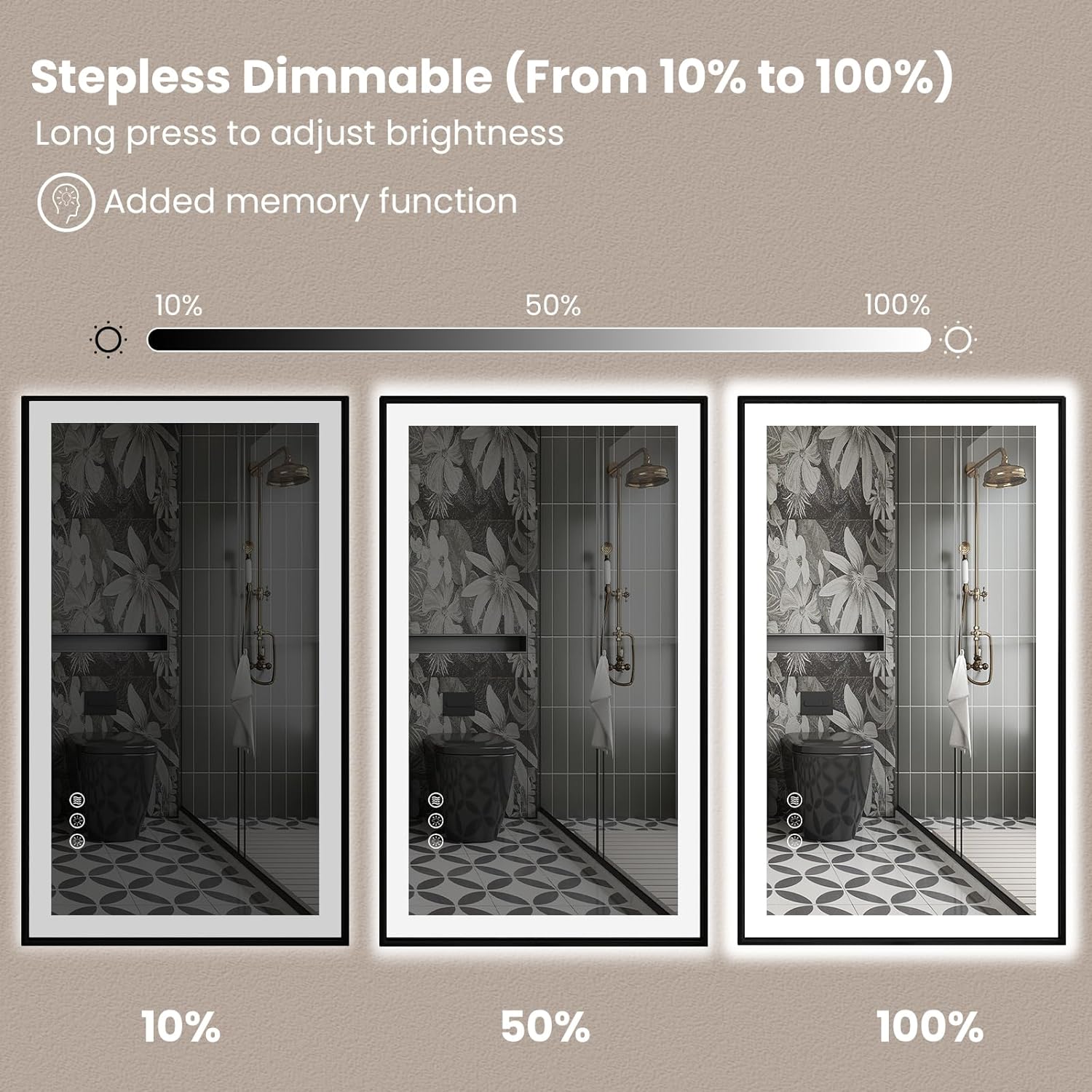 Amorho 48"x 32" LED Bathroom Mirror with Black Frame, Front Light and Backlit(Controlled Separately), Stepless Dimmable, Anti-Fog, Shatter-Proof, 3 Colors, Memory
