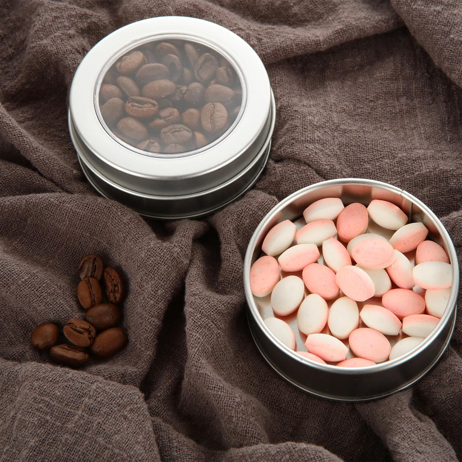 - Transparent Top: Round tin cans with a transparent window at the top allow you to quickly and easily find what you need without having to open the lid, and are reliable, lightweight and easy to use. The tins are a perfect size for a party favor, when you use it as salve tins or candy tins the top window will show your items clearly