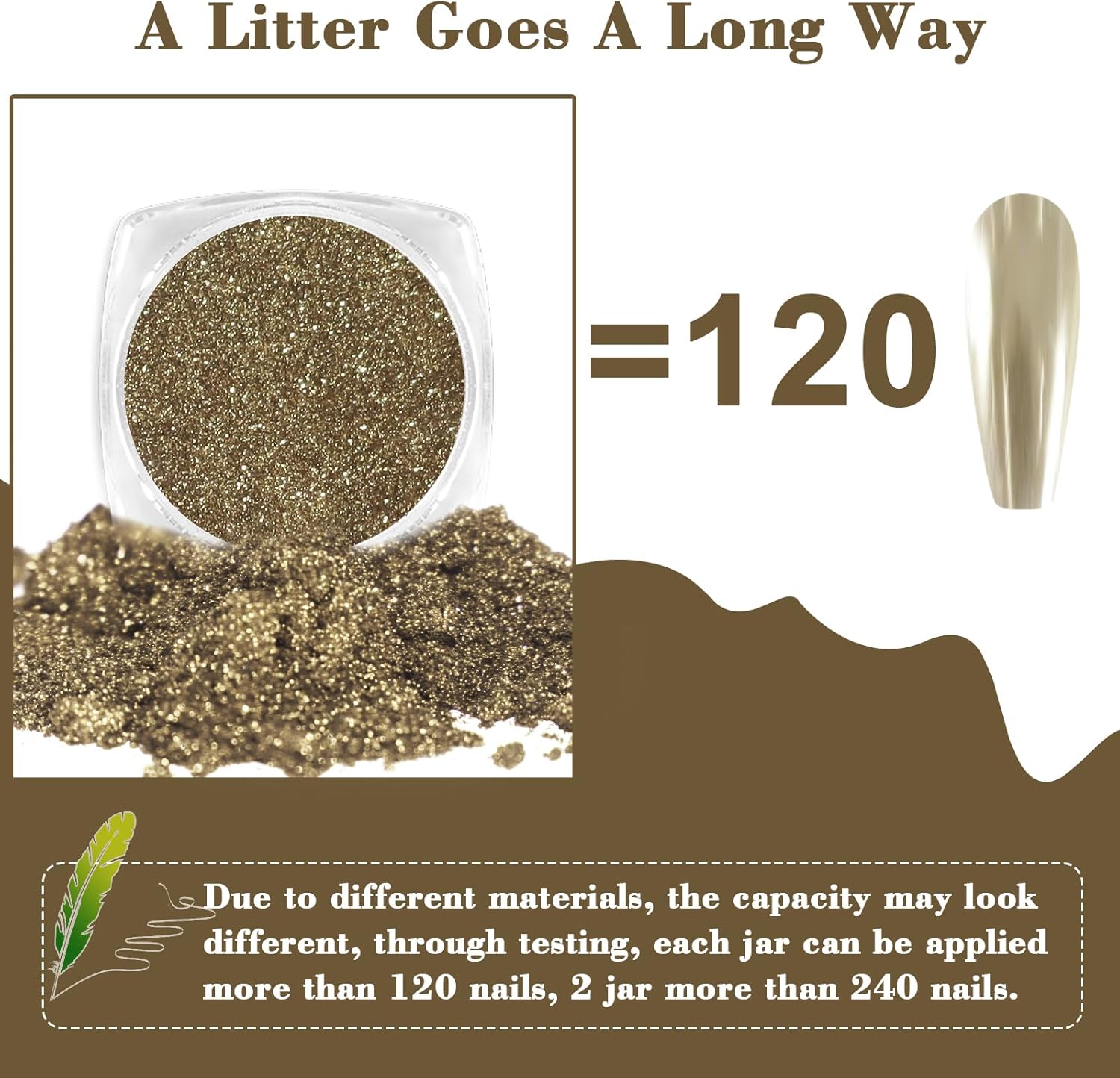 Allstarry Chrome Nail Powder 2pcs Metallic Mirror Effect Dust Glitter Glazed Manicure Decoration Reflective Pigment for Gel Polish Nail Art Decoration Resin Craft, Festivals - Champagne Gold