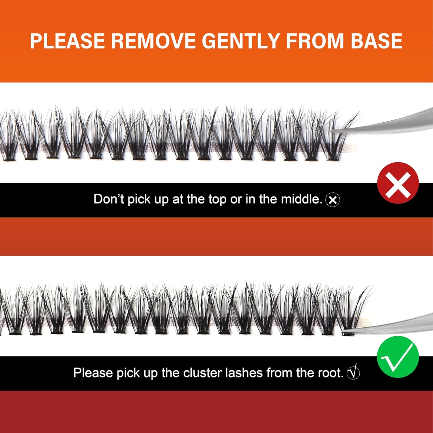 - ๐๐ฎ๐๐ ๐๐ผ W๐ฒ๐ฎ๐ฟ L๐ฎ๐๐ต๐ฒ๐ C๐น๐๐๐๐ฒ๐ฟ Apply a thin layer of eyelash adhesive to the root of natural eyelashes, gently place the eyelash cluster under the bottom of natural lashes using eyelash adhesive, and then apply a thin layer of eyelash sealant to fix the lash cluster in place and eliminate any residue