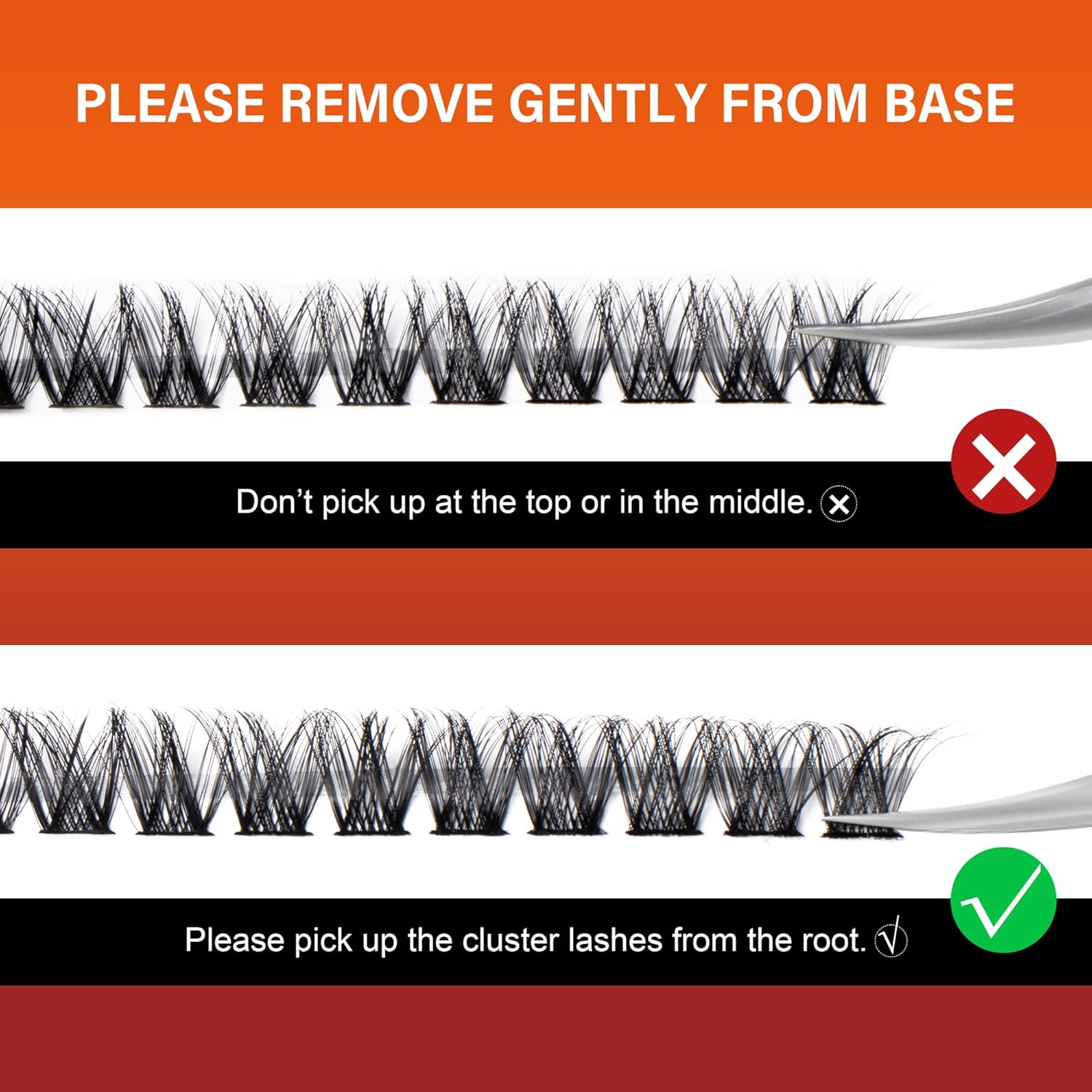 - ๐๐ฎ๐๐ ๐๐ผ W๐ฒ๐ฎ๐ฟ L๐ฎ๐๐ต๐ฒ๐ C๐น๐๐๐๐ฒ๐ฟ Apply a thin layer of eyelash adhesive to the root of natural eyelashes, gently place the eyelash cluster under the bottom of natural lashes using eyelash adhesive, and then apply a thin layer of eyelash sealant to fix the lash cluster in place and eliminate any residue