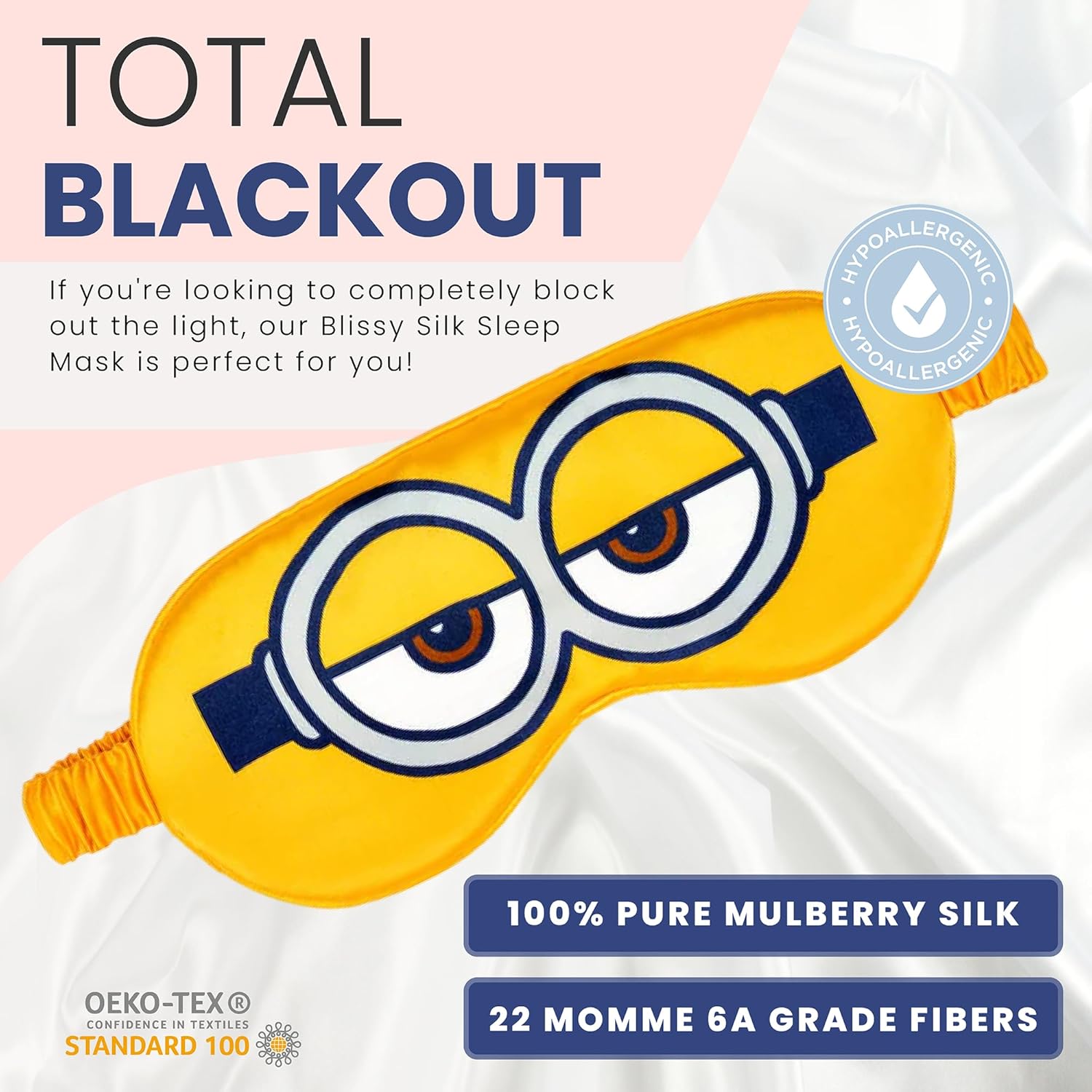 Blissy Silk Sleep Mask - Silk Eye Sleeping Mask for Women & Men for Total Blackout - 100% Pure Mulberry Silk, 22 Momme 6a Fibers - Blindfold Silk Sleep Mask Side Sleeper Eye Cover (Minion)