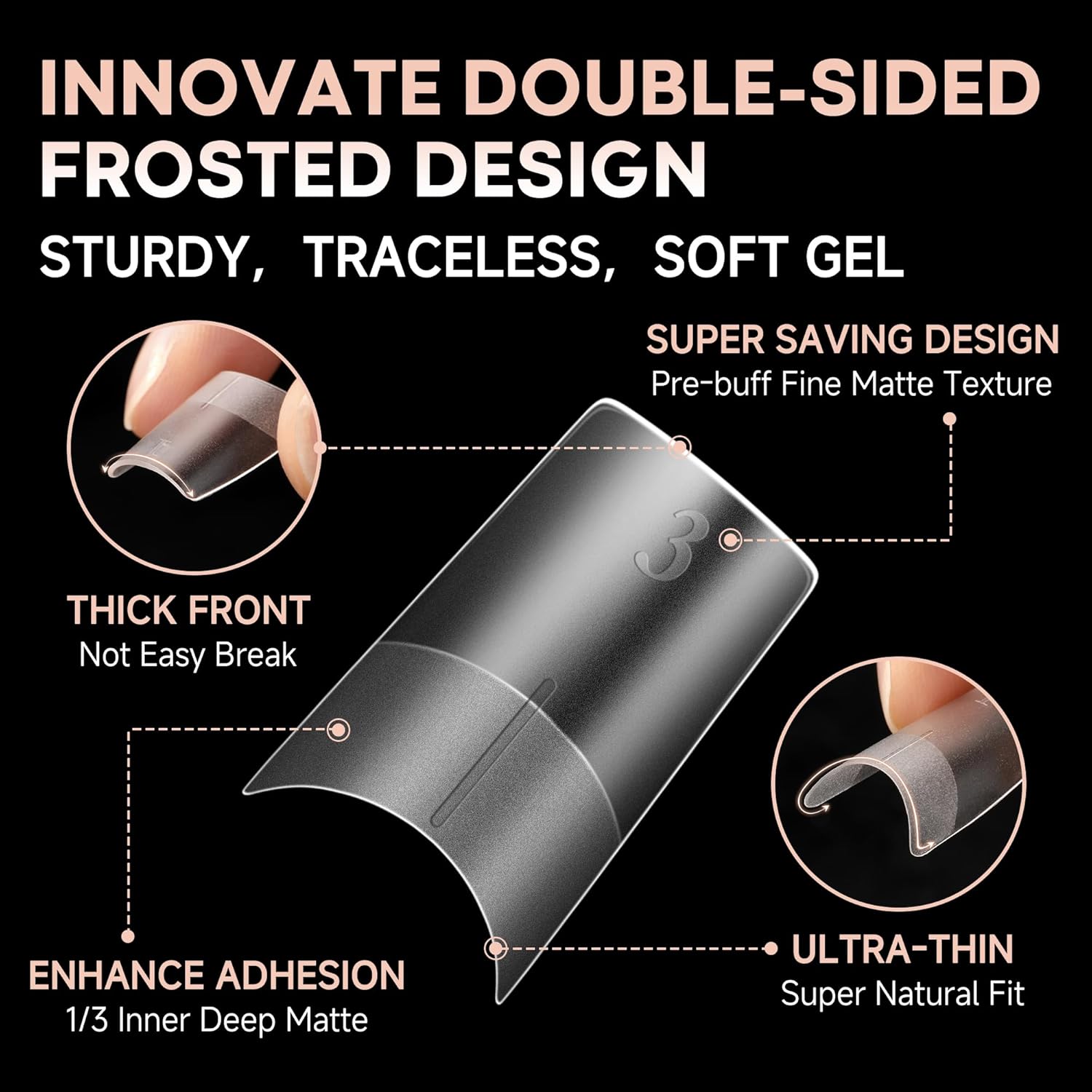 • 💖NEWLY DOUBLE SIDE MATTE TEXTURE-Our medium square gel nail tips upgraded double-sided frosted design. The surface pre-buff with fine matte for applying base coat gives a glossy look. And 1/3 inner pre-buff with deep matte for better adhesive nails. "Thick Front, Ultra-thin Back" design benefit of break-resistant and ultra fit. Let you enjoy this unprecedented professional nail salon enjoyment!