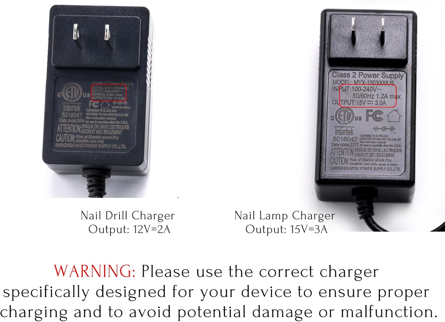 - ATTENTION: E1 Errors Indicate Low Battery. Please Charge Using the Correct Charger with an Output of 15V 3.0A. This Device Will Not Work with the Nail Drill Charger, Which Has an Output of 12V 2.0A.