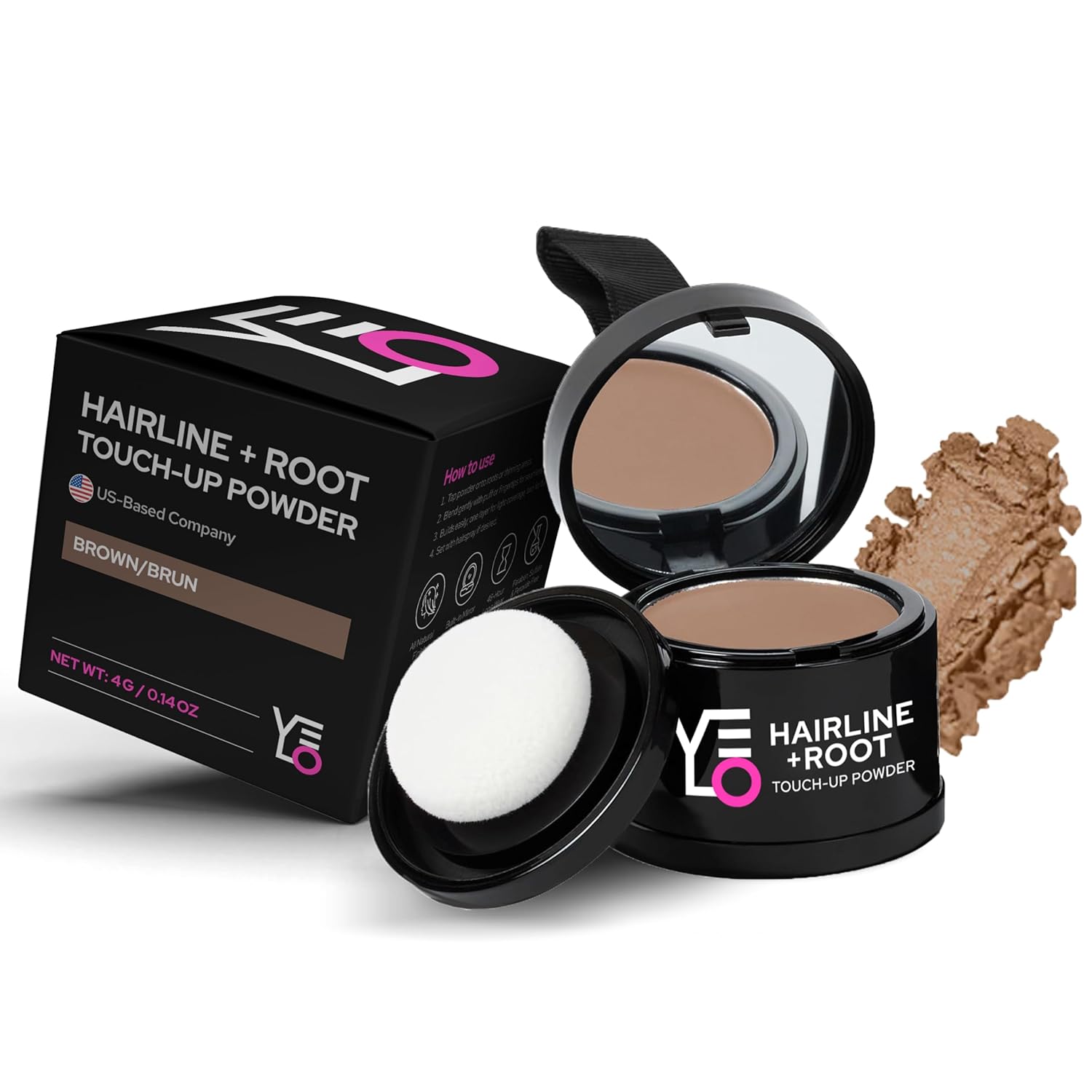 VELO Hairline Powder–BROWN Hair Root Touch Up Powder for Women & Men–Instantly Covers Gray Hair, Thinning Hair & Bald Spots–Sweatproof Root Cover Up–Puff & Mirror Compact, 13 Shades