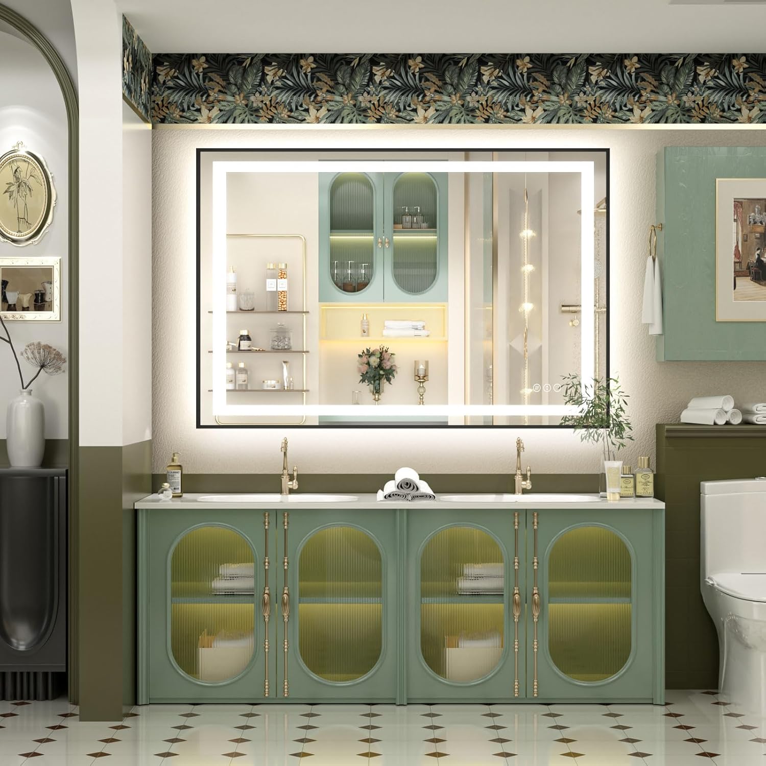 - 【Plug in/Wall Switch】Every lighted mirrors for bathroom wall comes with a standard US plug for immediate use. It can also be controlled by a wall switch, but we recommend hardwired installation by a professional electrician.