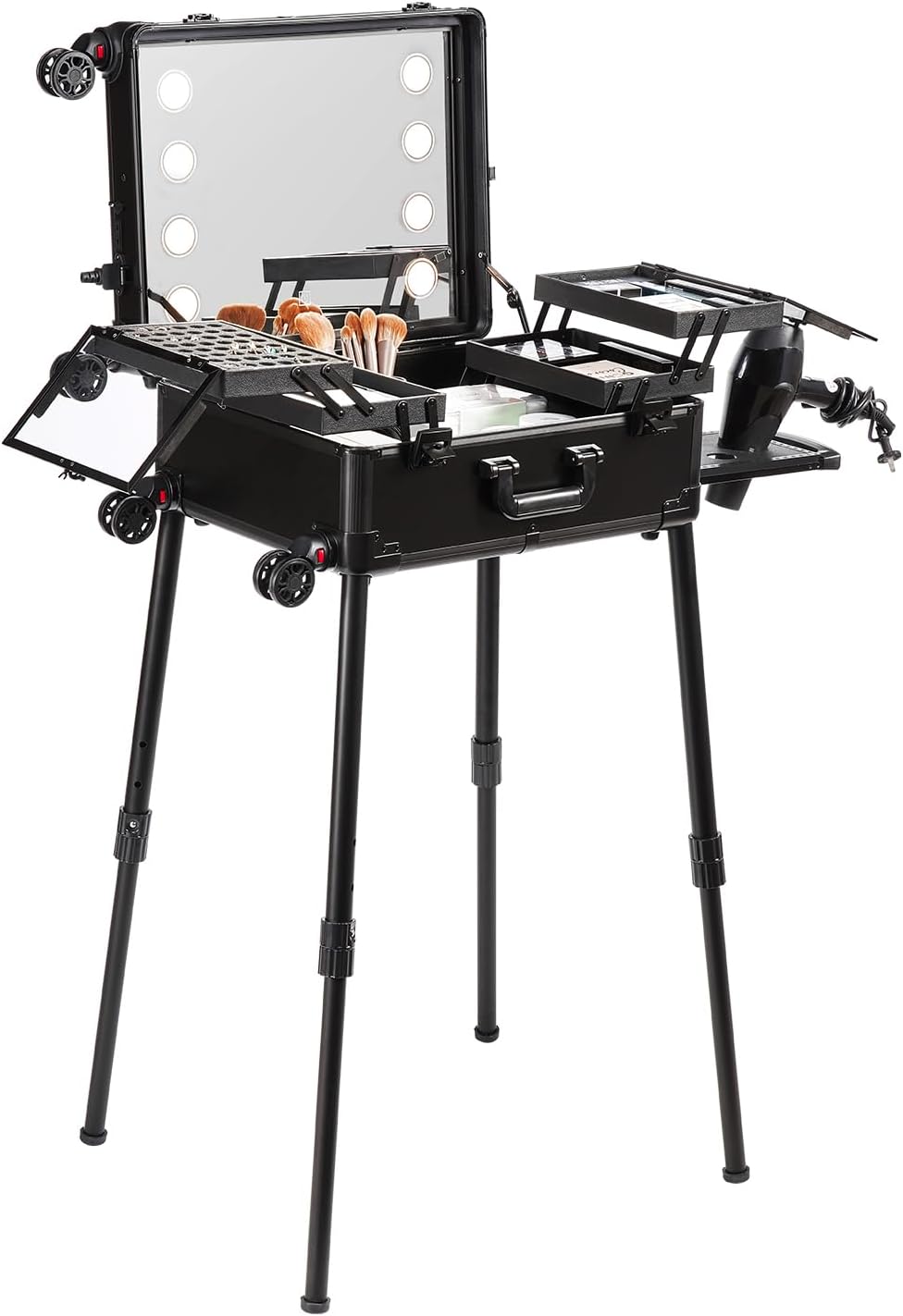 - Lightweight and Portable: The makeup case weighs only 24.9 pounds/11.3 kilograms and is equipped with an adjustable pull rod and 360Β° rotating large-size wheels, making it easy to carry. You can easily fit it in the trunk of your car or take it on a plane, making it your mobile makeup workstation.