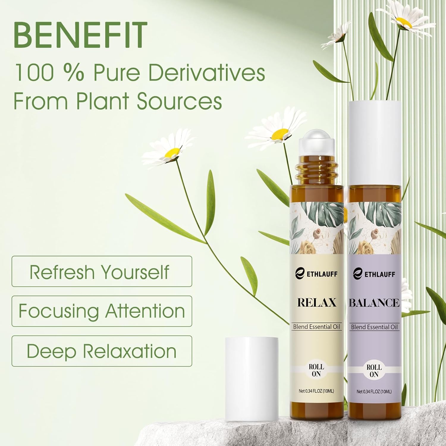 - Skin-friendly essential oils: Our roller ball essential oil is very skin-friendly and has good fluidity. Just rub it gently on your wrist to quickly spread the essential oil. 100% Pure Derivatives From Plant Sources.Contains natural carrier oils. Apply to wrists, chest, temples, palms, soles of feet and behind ears.FOR EXTERNAL USE ONLY ๏ผ