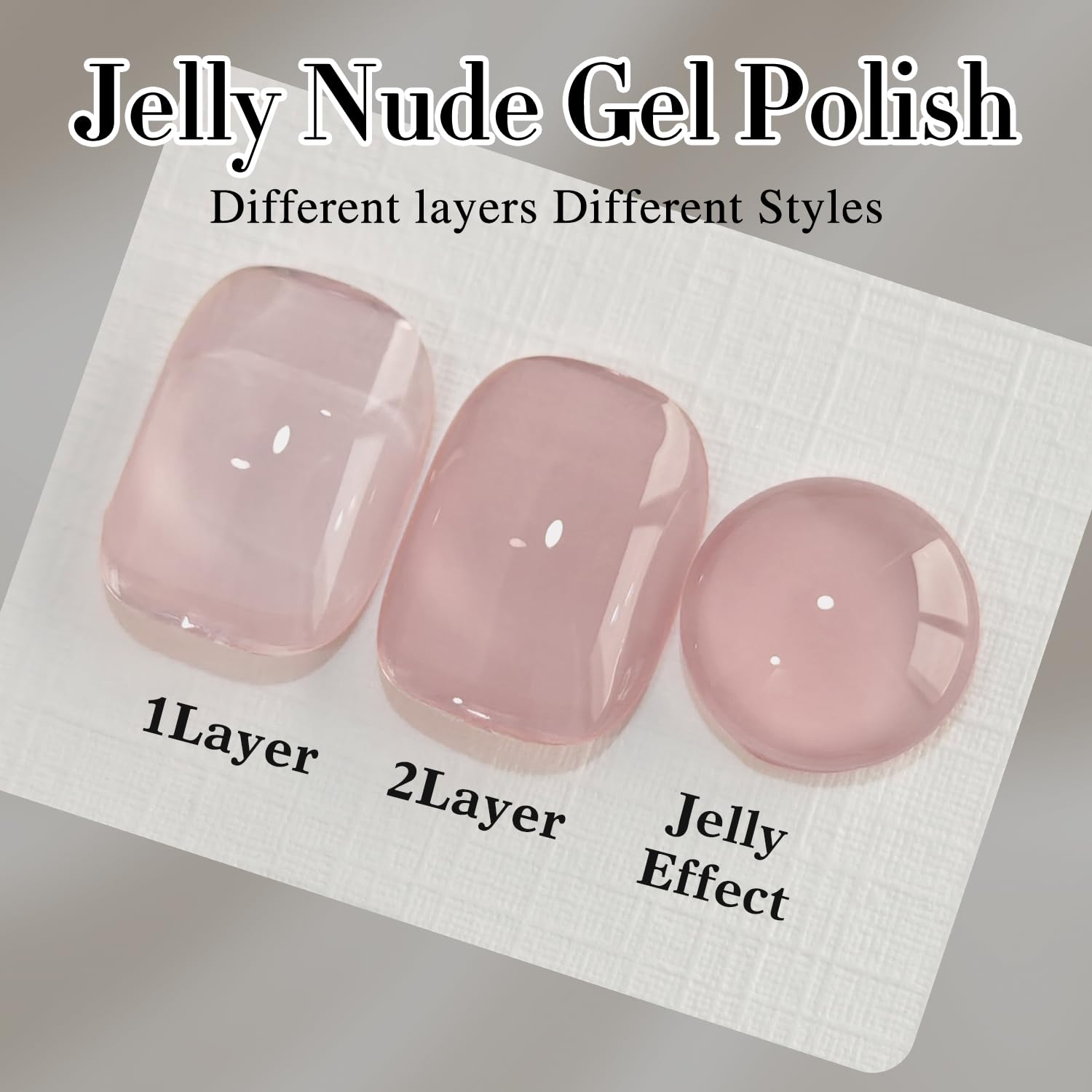 • Jelly Milky GEL POLISH: 1 pc 15ml jelly gel polish, different layers with different effects,need to be cured under UV or LED Lamp for 60-120s. Must apply with Base Gel and Top Coat. Please shake the bottle or warm it with hot water before use, to acheive a better effect.