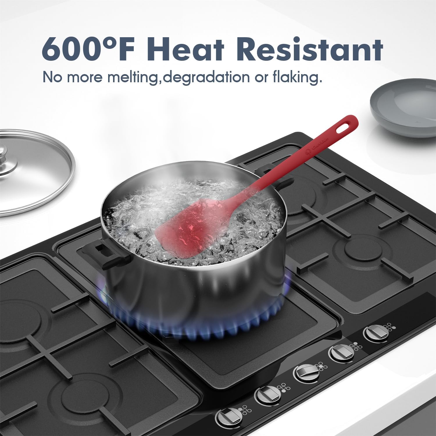 5 Pieces Silicone Spatula Set, Food Grade Rubber Spatula, Upgrade Strong Handle with Ergonomic Grip, Heat Resistant Up to 600°F for Nonstick Cookware, Cooking Red