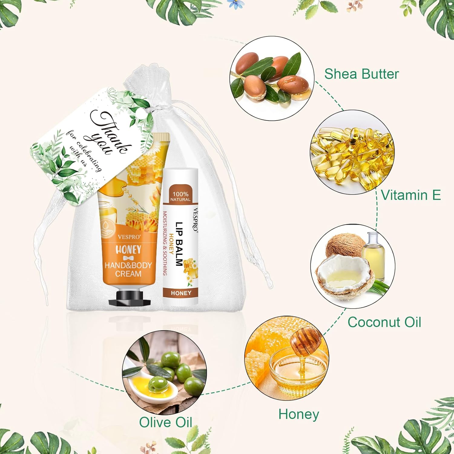 50 Sets Hand Cream Bulk and Lip Balm Bulk Gifts, Bridal Shower Favors, Bridesmaid Gifts and Baby Shower Party Favors for Guests with Thank Card Organza Bags, Thank You Gifts and Small Gifts for Women