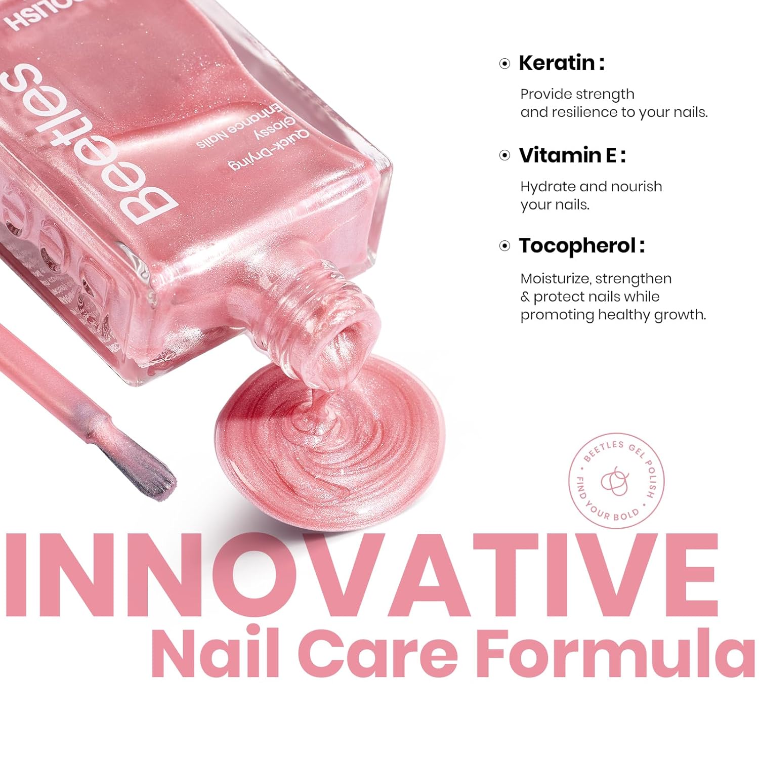 Beetles Pink Nail Polish - 15ML Quick Dry Nail Polish Romantic Reverie Pink Rose Pearl Nail Lacquer Shimmer Fingernail Polish Art Effect for Nail Salon-Quality