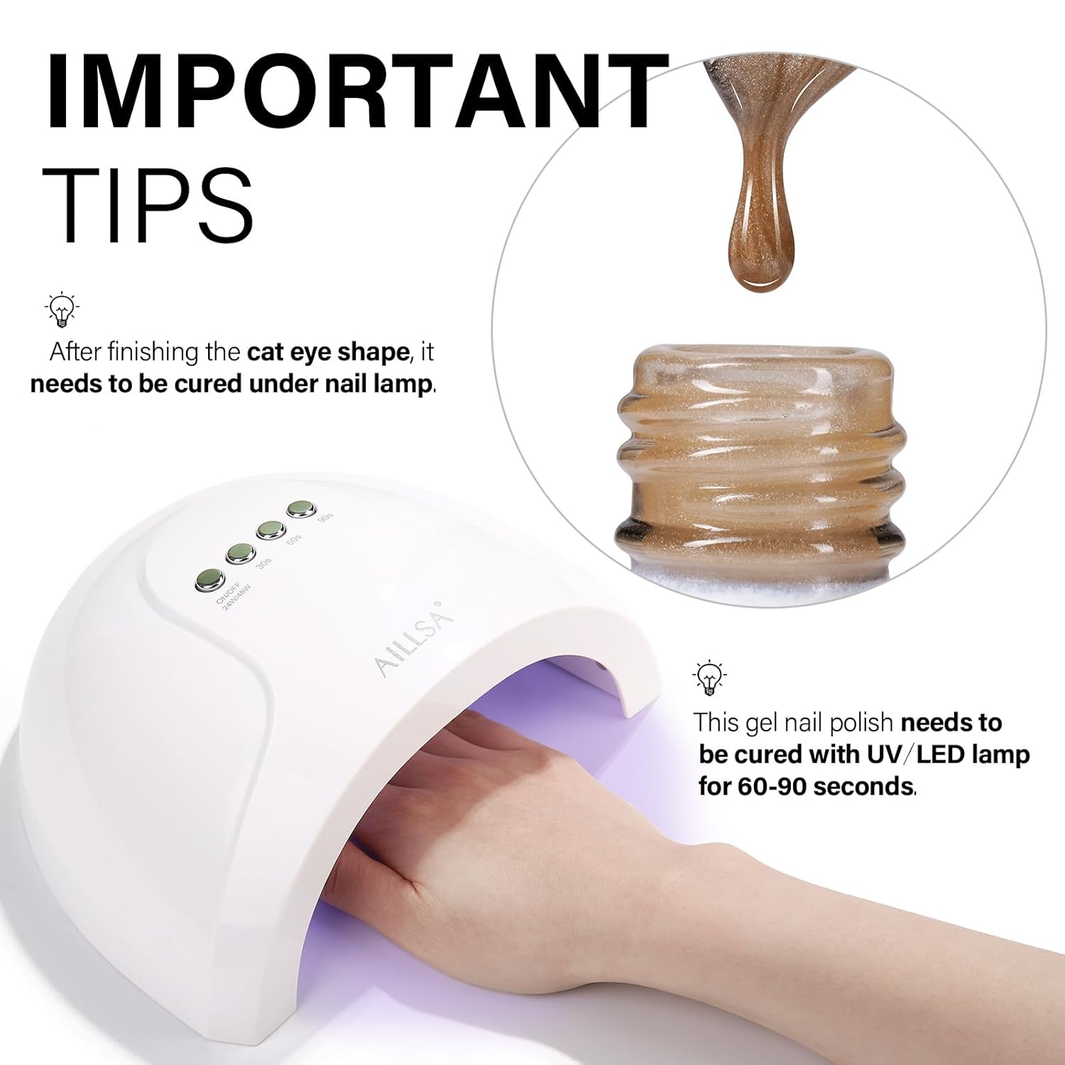 - Crystal Sparkle Effect: AILLSA cat eye gel polish creates mirror-like sparkle, crystal-clear nails, or vibrant cat-eye effects. Use it alone or pair it with any base color for stunning crystal glass nail designs featuring translucent tones and a dazzling finish.