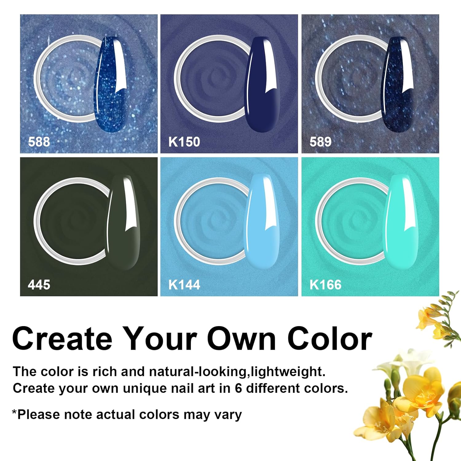 - Included Components : Dip Powder(6*0.35oz), Dip Liquid Set(4*0.5floz), Nail Brush*1, Nail file*1,Substitute brush*2