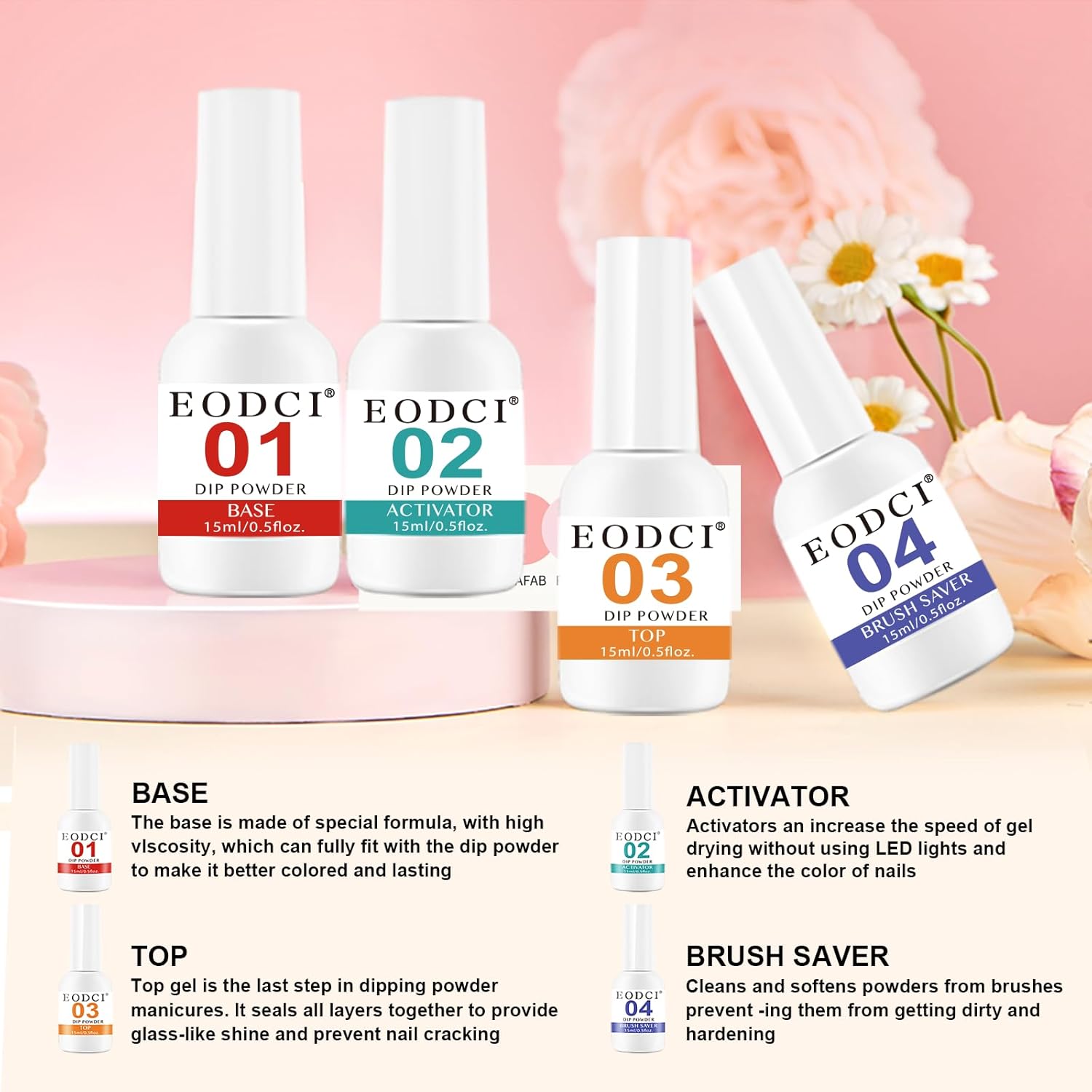 - ăNo Lamp NeededăEodci Nail Dipping Powder does not require UV/LED light to cure, is skin friendly while avoiding skin darkening and damage, safe and easy to use, suitable for beginners and professional nail salons.