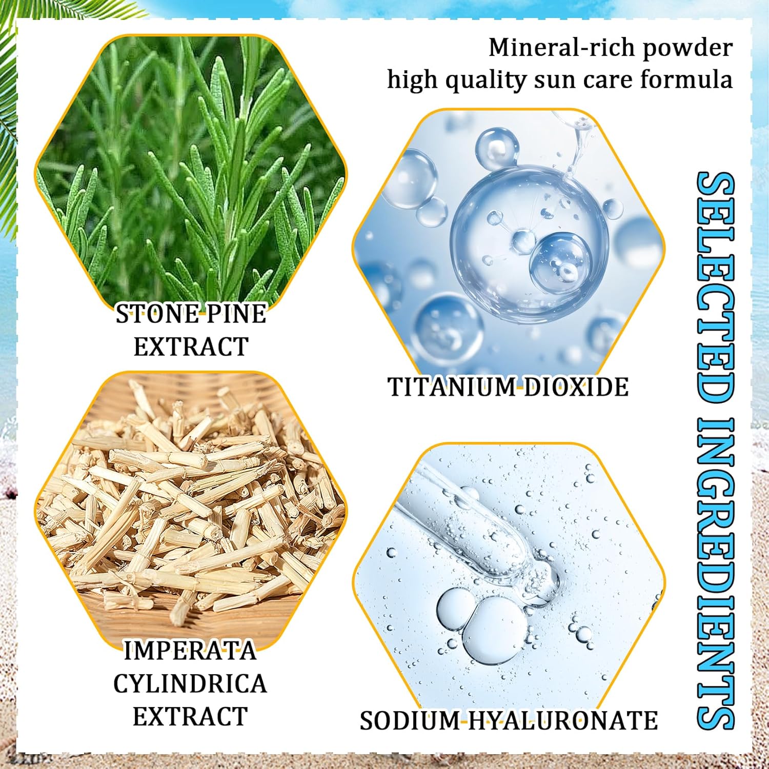 - đșăSuitable for Various Skin TypesăSunscreen powder is suitable for dry, oily and sensitive skin types, it also provides you with SPF50+, which is ideal for you to use during your daily commute or other outdoor activities, and can provide you with an effective sun protection experience.