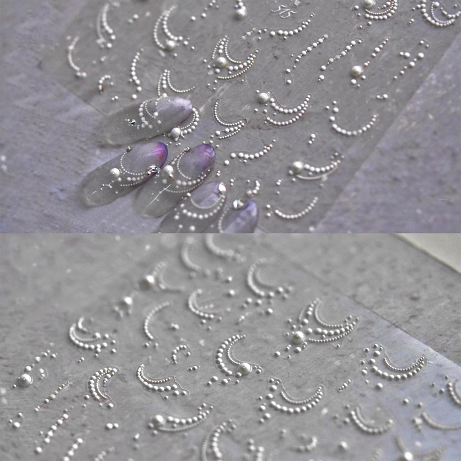 - Easy to Use: White pearls nail stickers decal are self-adhesive, completing fashion-cool nail art design in just a few seconds. If you want to keep it for a long time, you need to apply nail polish on the surface for reinforcement