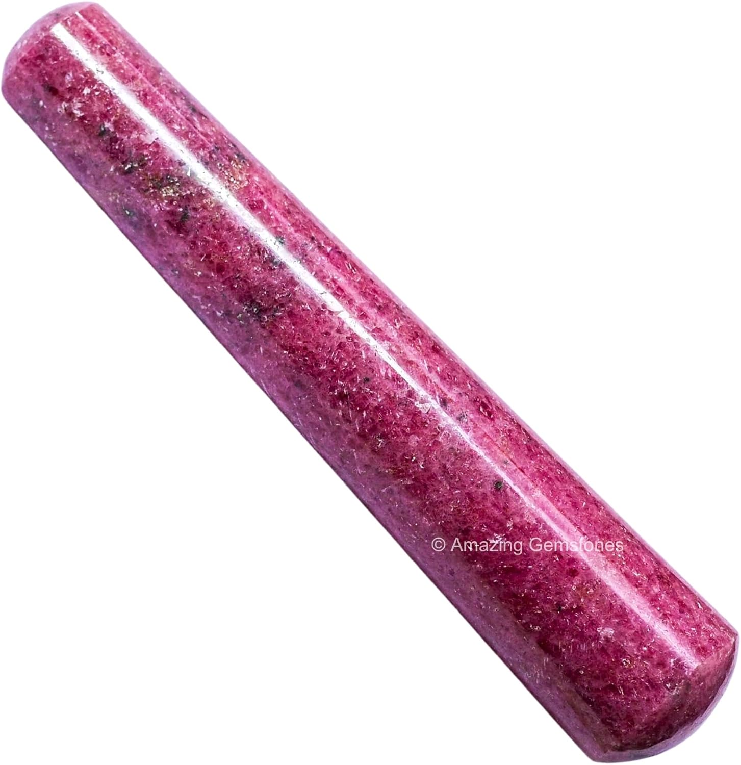 Amazing Gemstone Rhodonite Crystal Wand Massage Stick - Pelvic Wand Gua Sha for Adults - Crystals and Healing Stones Massage Wands for Adults Gifts (Smooth)