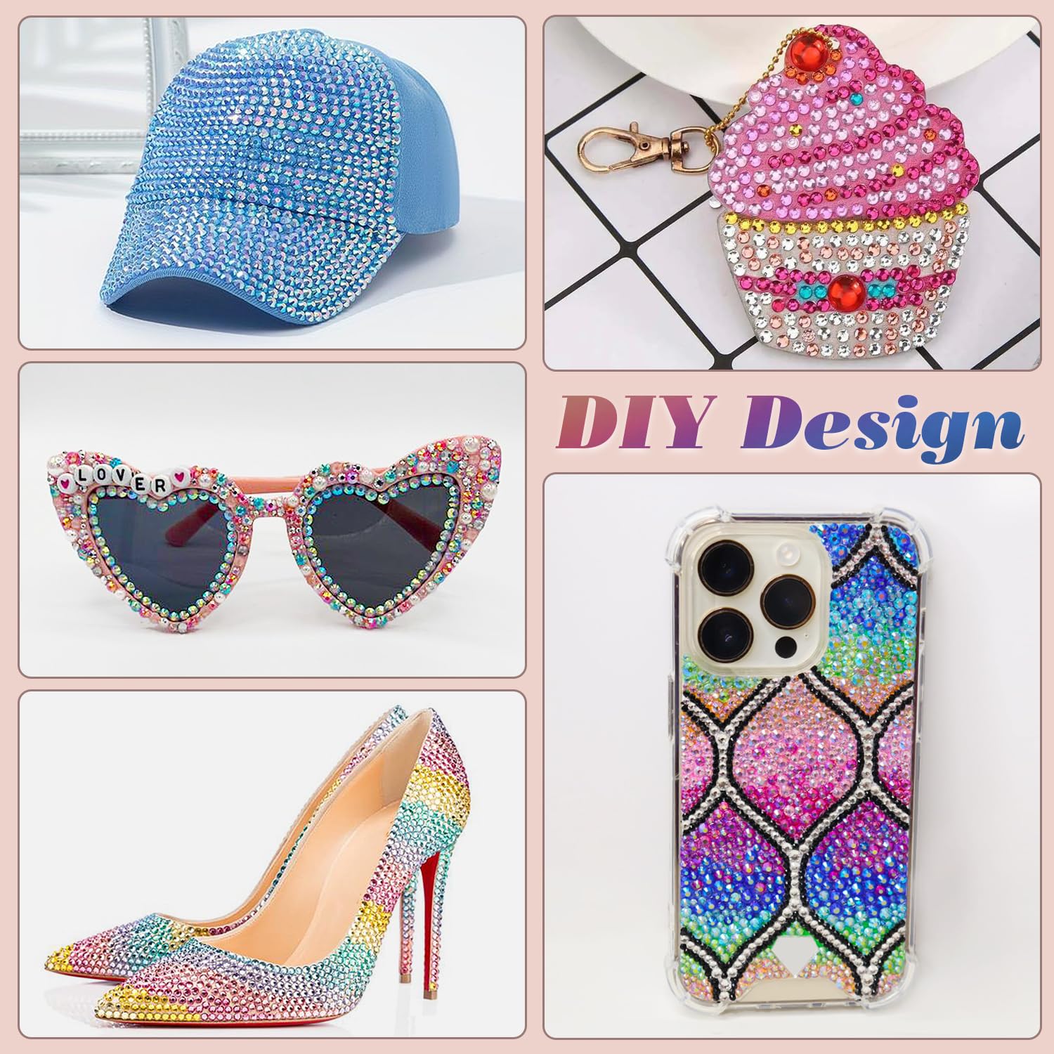 - ✨Wide Application -- These iridescent rhinestones are perfect for bedazzling DIY crafts, like shoes, tumbler, mug, phone case, glasses, hat, photo frame, graduation cap, greeting cards, bags, guitar, keychain, mask, hair clip, bracelet, wristband, clothes, wedding dresses, and more. You can use them as nail embellishments as well. Just apply it to what you want to bling!