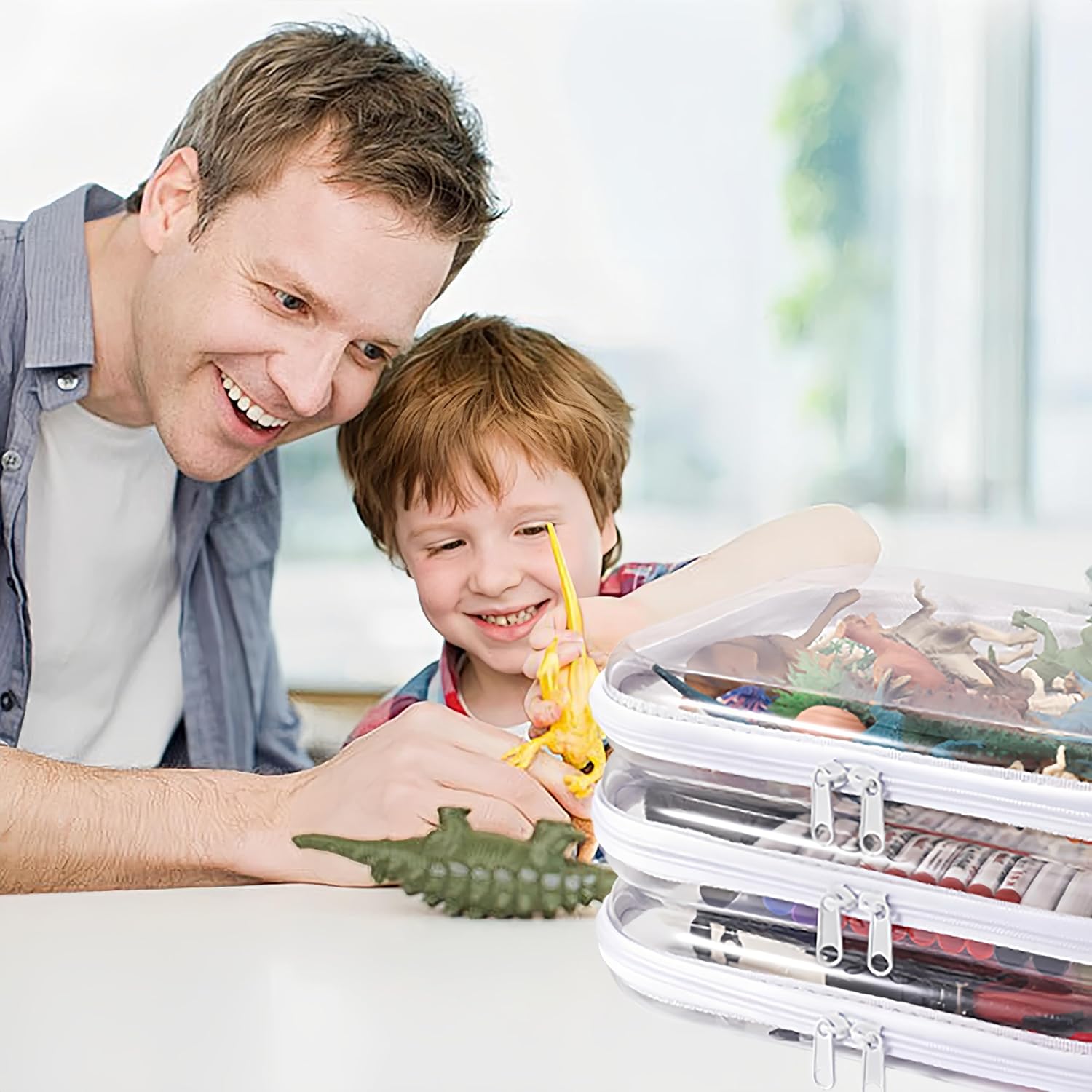 Clear Hard Plastic Zipper Case,Transparent Double Zippers Hard Pouch with 3pcs,Portable Travel Organizer Bin for Toy Storage