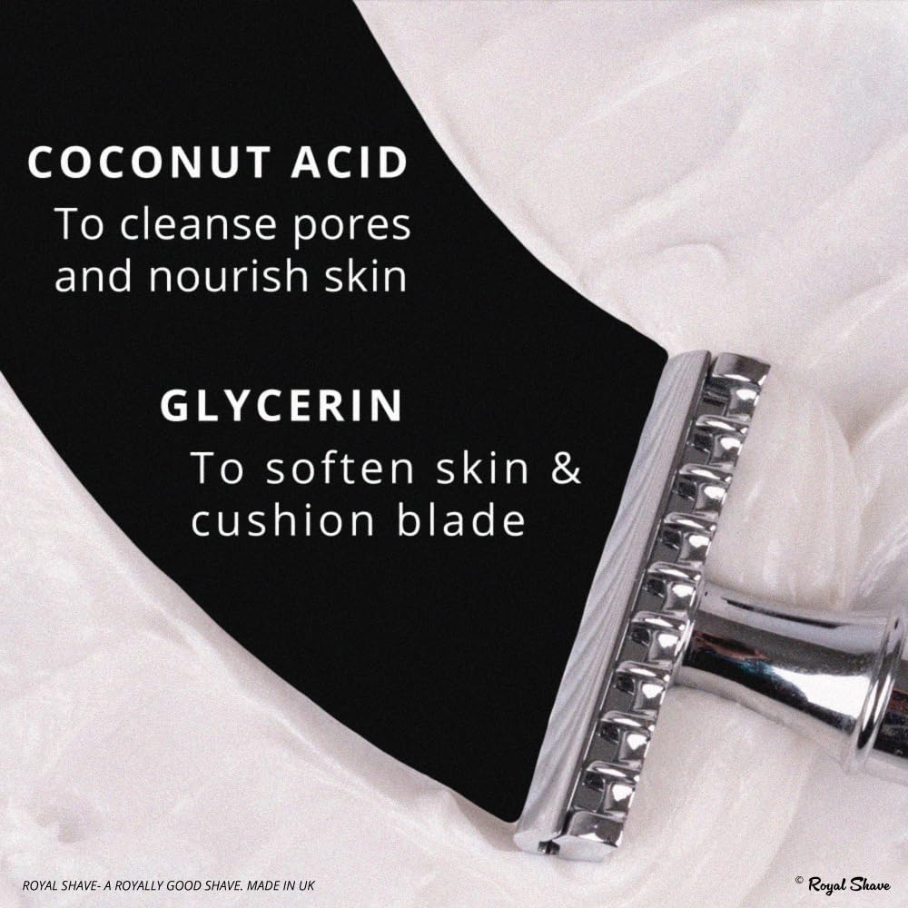 - BARBER APPROVED: Experience timeless grooming with Royal Shave Luxury Shaving Cream for Men, expertly crafted in Britain. The luxurious formula cushions the skin while providing a close, comfortable shave.