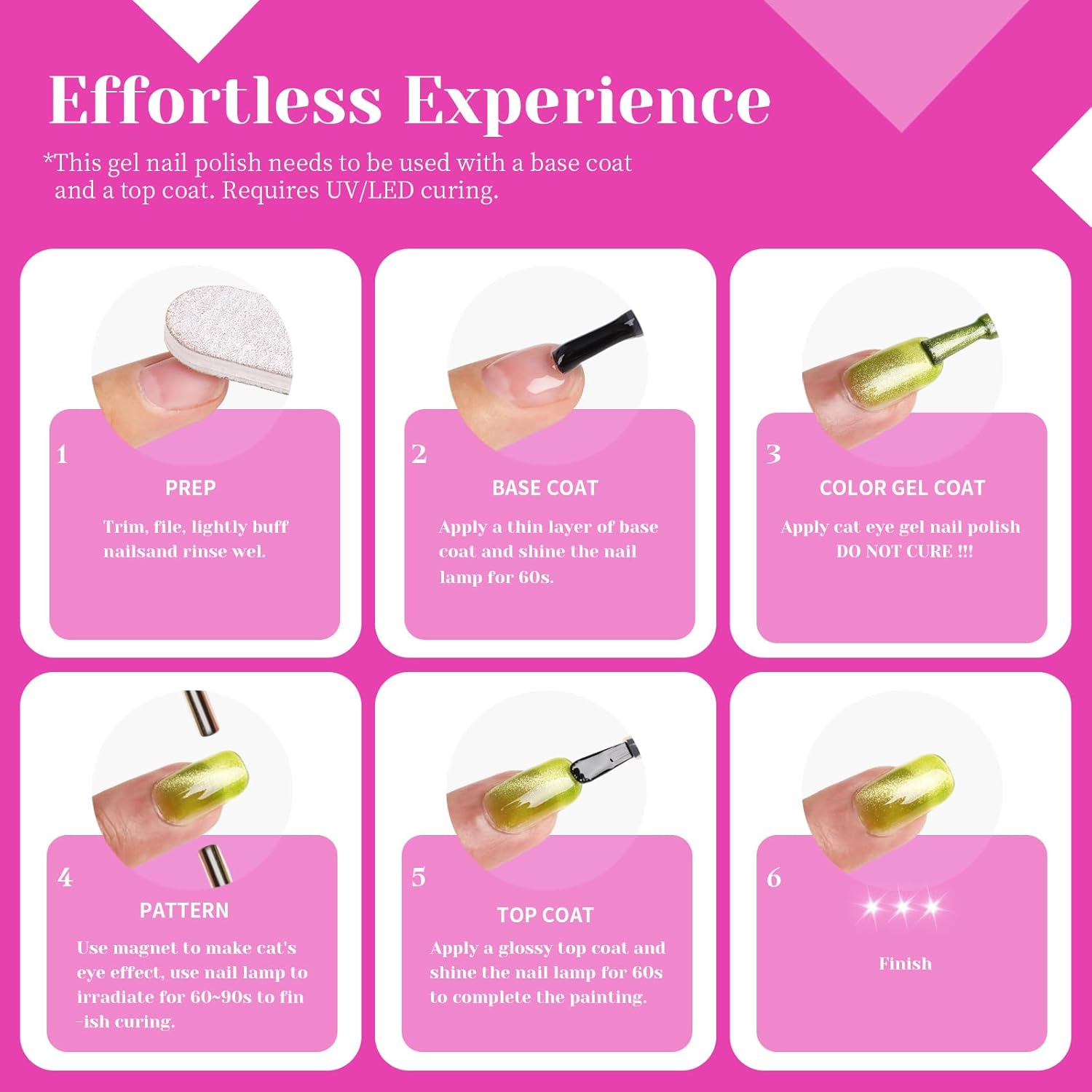 • Don't settle for ordinary nail polish, go for the extraordinary with TUTUYU Cat Eye Gel Polish. Enjoy salon-quality nails that are sure to turn heads with their holographic, shimmery, and reflective finish. Upgrade your manicure game today!