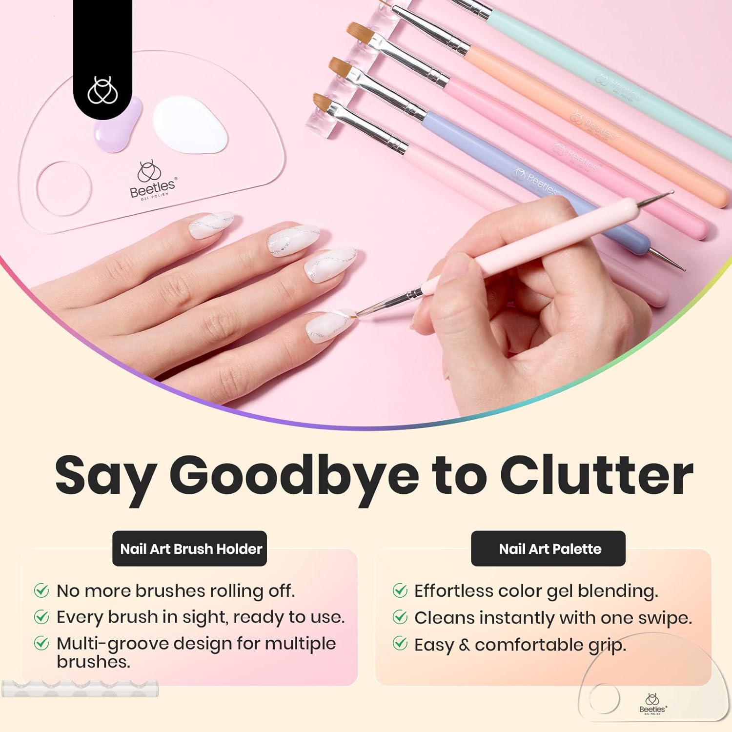 • 5 SIZES FOR NAIL DESIGN - Beetles liner brushes equipped with DURABLE METAL SHANK and available in 5 different lengths - 5 mm pink, 6 mm pruple, 11 mm blue, 20 mm orange and 25 mm yellow to meet your daily nail design needs. Fashionable and beautiful. This gel polish brushes is the best choice for beginners and nail art lovers.